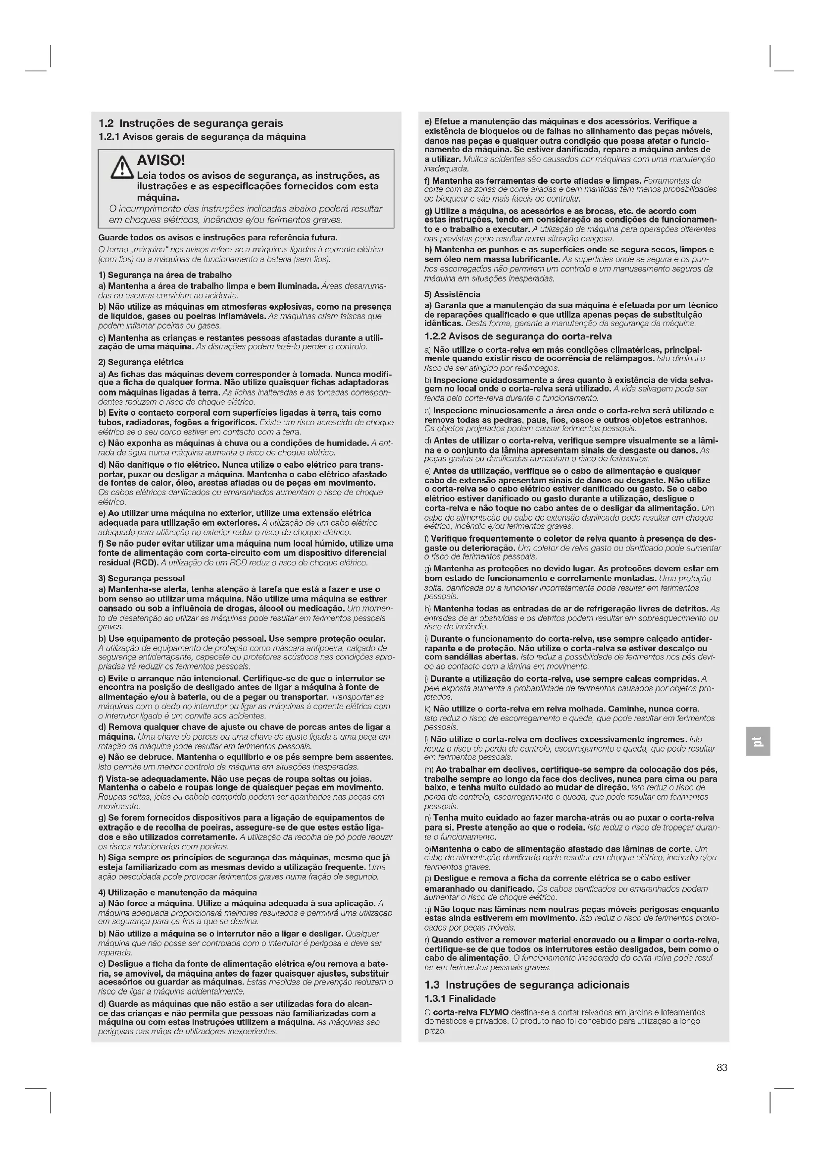 ) Durante o funciona do corta-relva, use sempre calcado antiderrapante e de protecao. Não utilize o corta-relva se estiver descalço ou com sandálias abertas. Istão reduz a possibícle de fenimentos nos pés devi do ao contacto com a lamina em movimento.