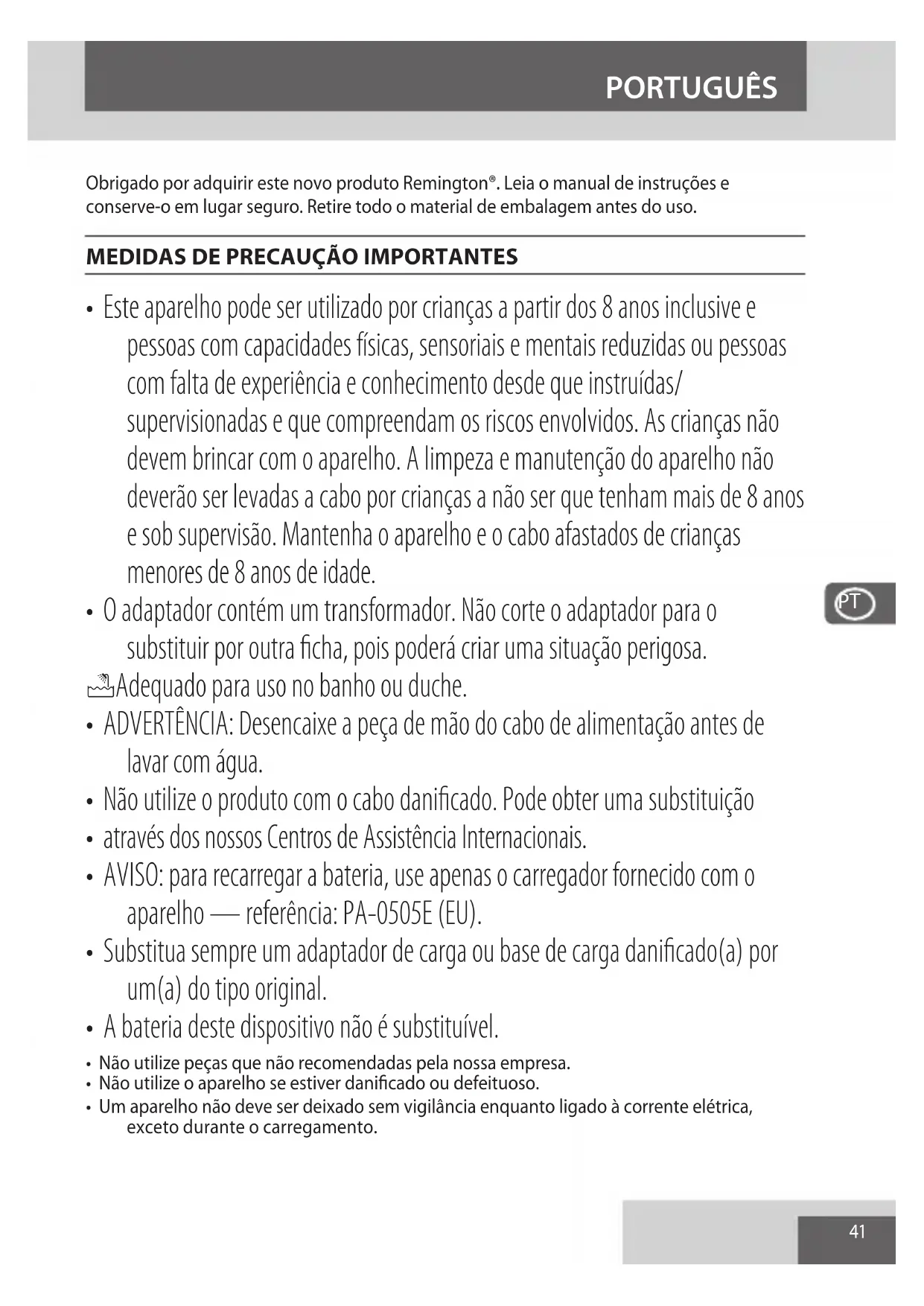 Para evitar problemas ambientais e de saúde devido a substâncias perigosas, os aparelhos e baterias recarregáveis e não recarregáveis com um destes símbolos não deverão ser eliminados com o lixo doméstico normal. Elimine sempre os produtos elétricos e eletrónicos e, quando aplicável, as baterias recarregáveis e não recarregáveis, no ponto de reciclagem/recolha ocial apropriado.45 Ďakujeme, že ste si kúpili nový výrobok značky Remington®. Prosíme Vás, aby ste si pozorne prečítali tento návod a odložili ho na bezpečné miesto. Pred použitím odstráňte všetky obaly.