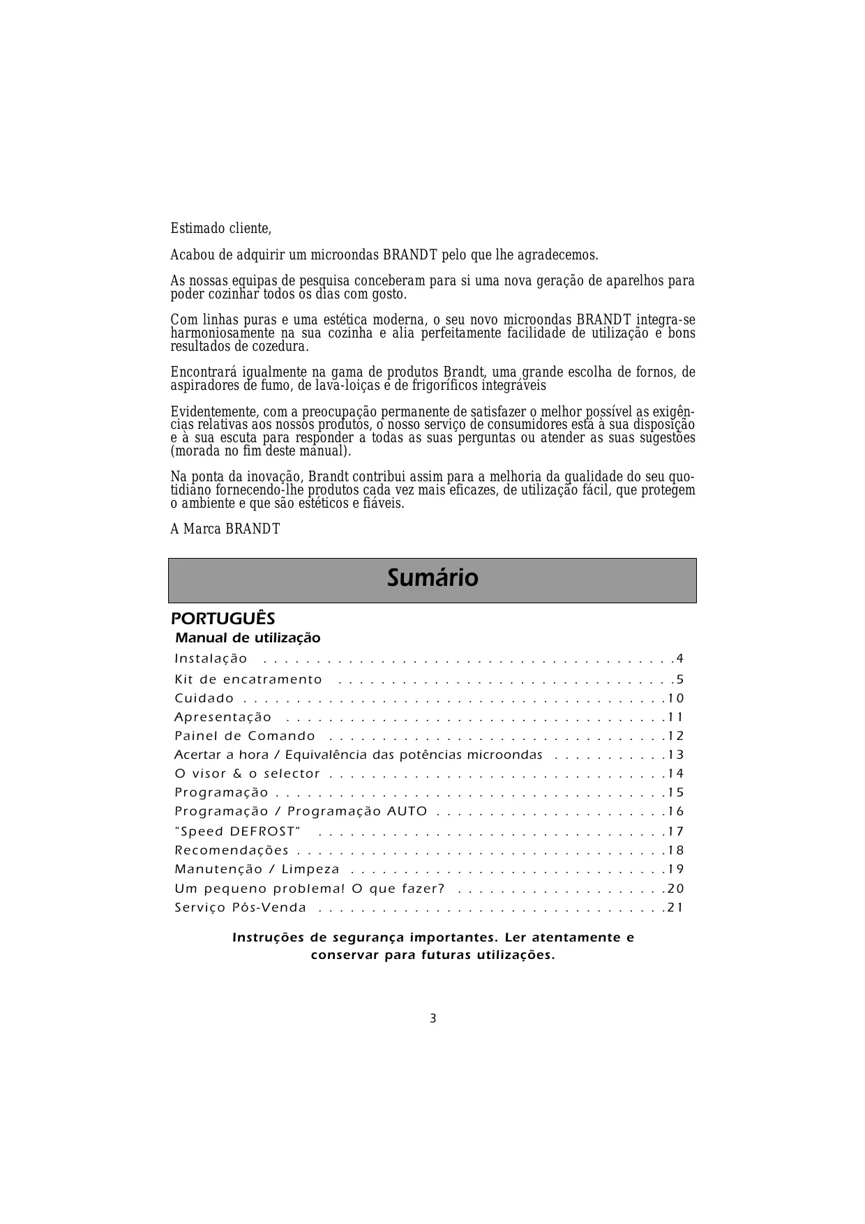 Encontre gratuitamente o manual do aparelho ME630XE1 BRANDT em formato PDF.