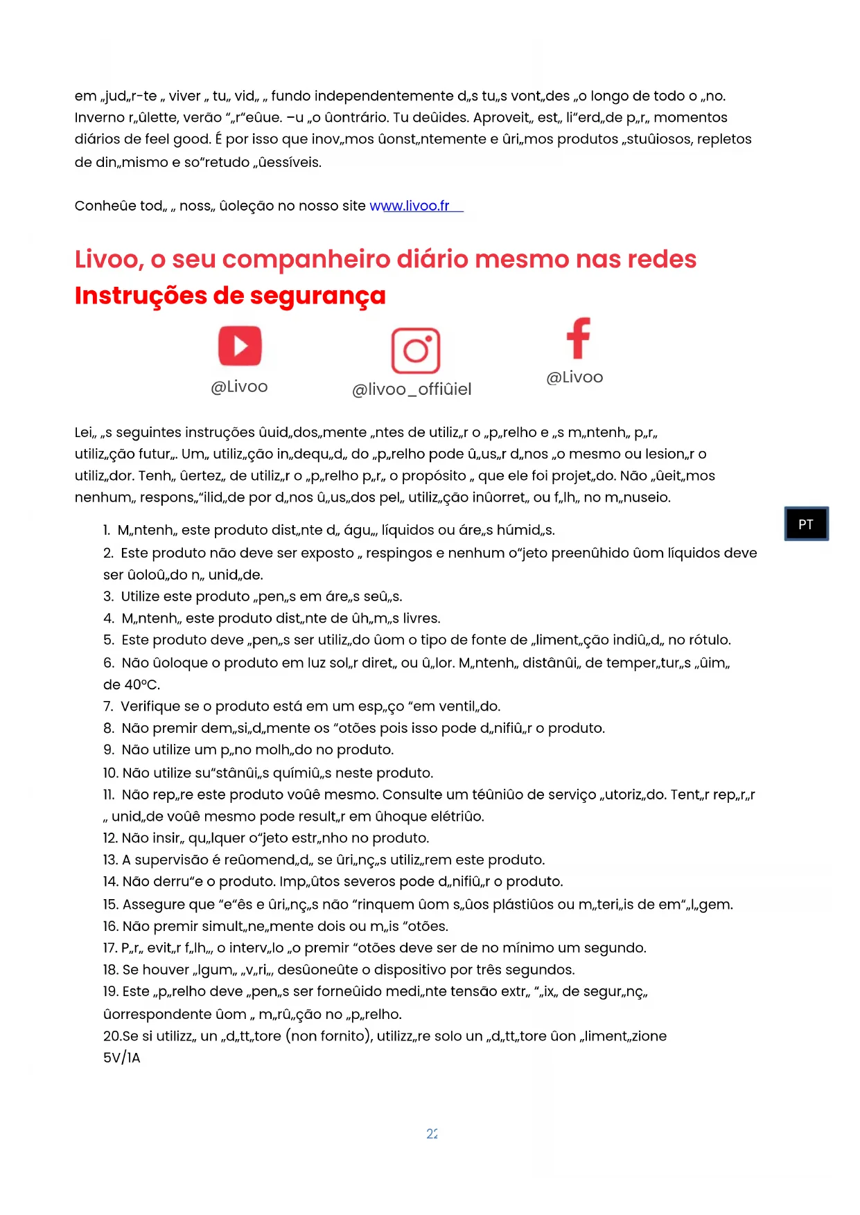 Obrigado por ter escolhido Livoo! A tua varinha, o teu barbecue, os teus fones não são simples objetos, são uma extensão de ti que te permite que te aproximes dos teus, que os reúnas, que rias e que partilhes. A ambição de Livoo consiste PT22