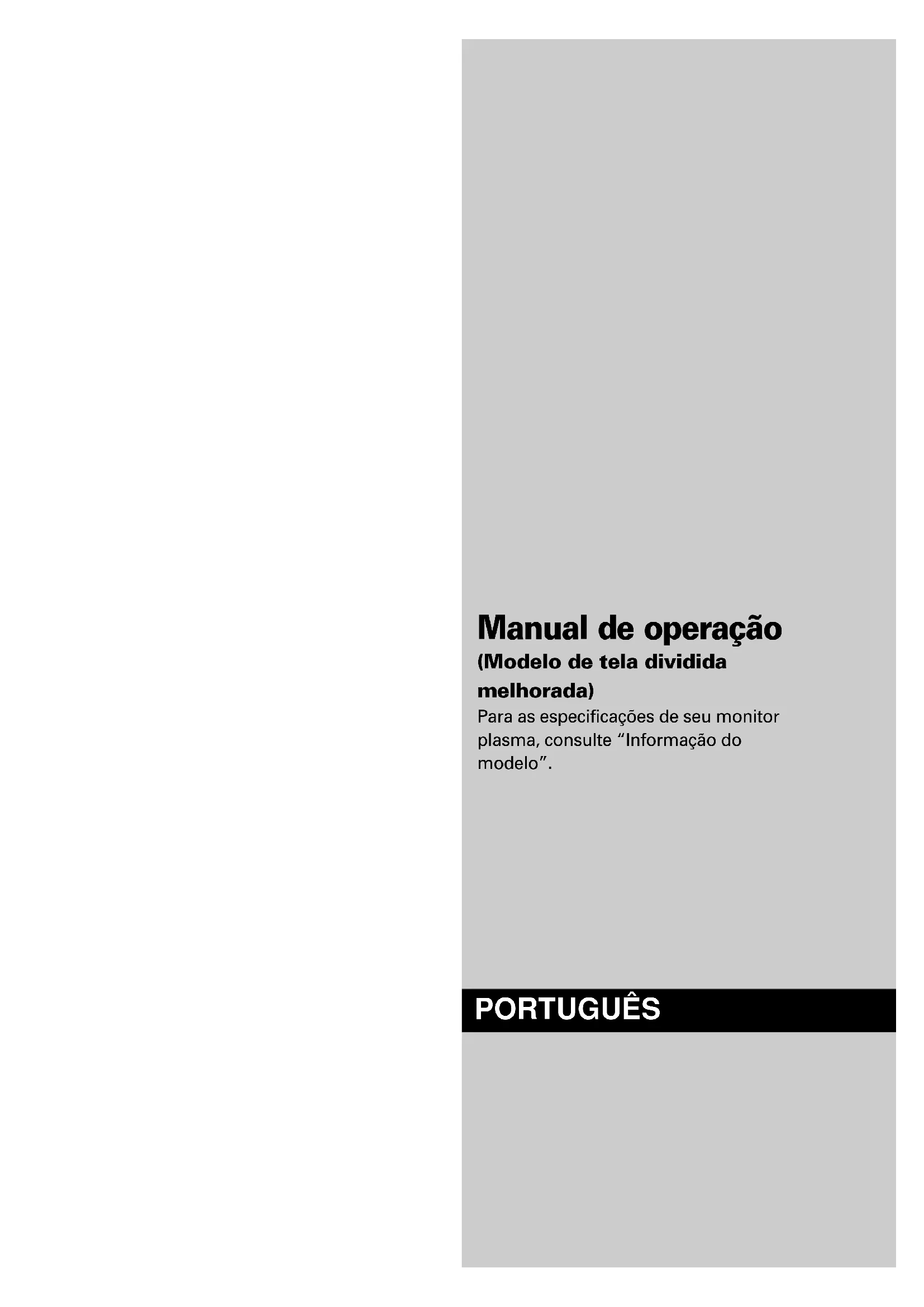PESSOAL QUALIFICADO. Este símbolo avisa o usuário que a voltagem nã isolada dentro da unidade poderá ter magnitude sufienciente para causar choque elétrico. Por esta razão, é perigoso tocar qualquer parte no interior desta unidade. Este símbolo alerta o usuário que informações importantes no que diz respeito à operação e manutenção desta unidade foram incuídas. Assim, deverão ser cuidadosamente lidas para evitar quaisquer problemas. AVISO PARA EVITAR PERIGO DE INCÊNDIO OU CHOQUE, NÃO EXPONHA ESTA UNIDADE À CHUVA E UMIDADE. TAMBÉM NÃO UTILIZE A FICHA POLARIZADA DESTA UNIDADE EM RECEPTÁCULOS DE CABO DE EXTENSÃO OU OUTRAS TOMADAS, A NÃO SER QUE SEJAM INSERIDOS PINOS. EVITE ABRIR A CAIXA ONDE SE ENCONTRAM OS COMPONENTES DE ALTA VOLTAGEM. O REPARO DEVE SER EFETUADO POR PESSOAL QUALIFICADO. Avisos e precauções de segurança Este monitor plasma foi desenhado e fabricado para funcionar sem problemas e durante muito tempo. Não é necessária qualquer manutenção para além da limpeza. Consulte a seção, “Procedimento de limpeza do monitor plasma” na página seguinte. O painel de visualização plasma consiste em elementos de imagem finos (células) com mais de 99,99 % de células ativas. Poderão existir células que não produzam luzes ou permaneçam acesas. Para uma operação segura e para evitar danos na unidade, leia atentamente e siga as seguintes instruções. Para evitar perigo de choque e incêndio: