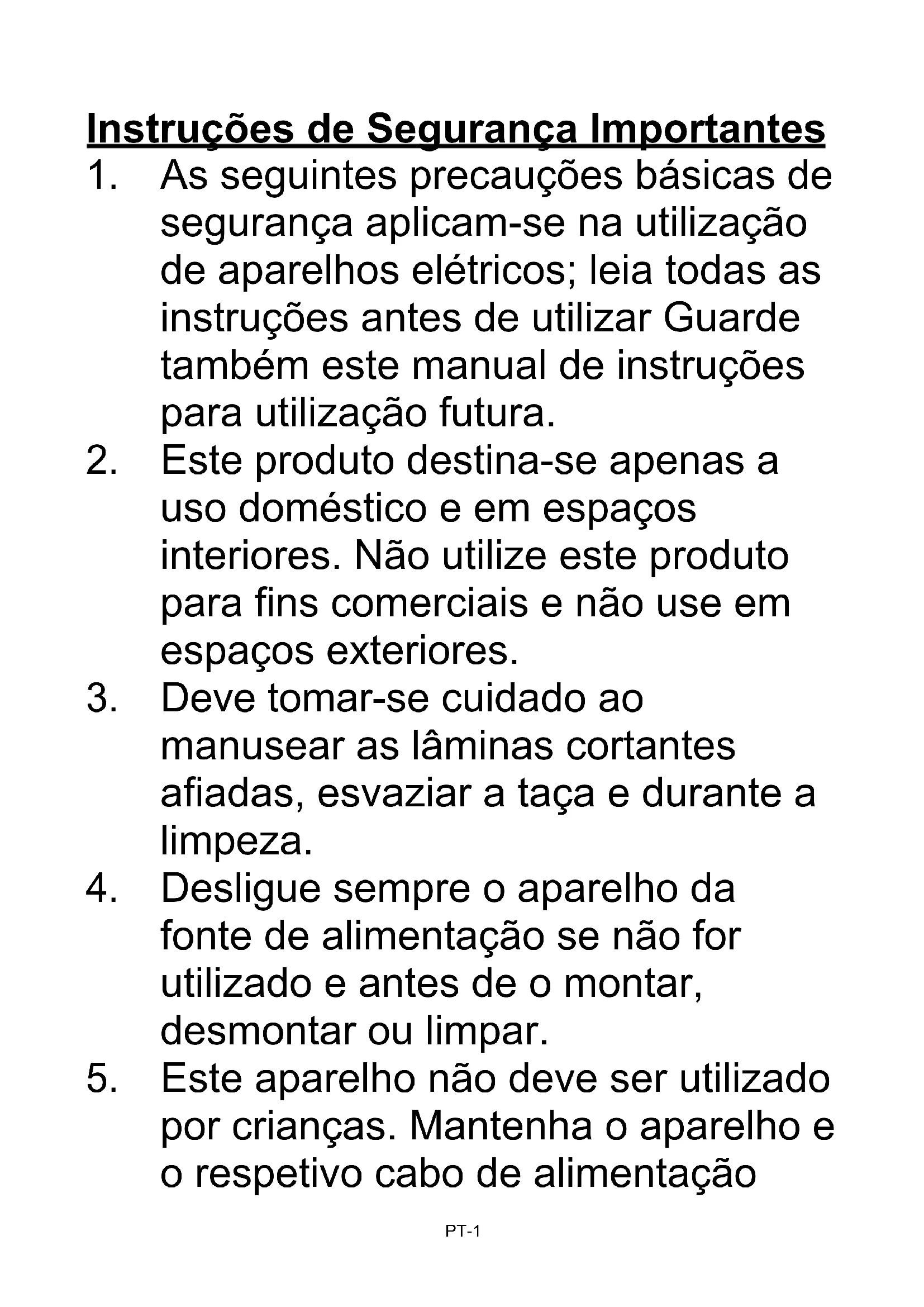 As seguintes precauções básicas de segurança aplicam-se na utilização de aparelhos elétricos; leia todas as instruções antes de utilizar Guarde também este manual de instruções para utilização futura.