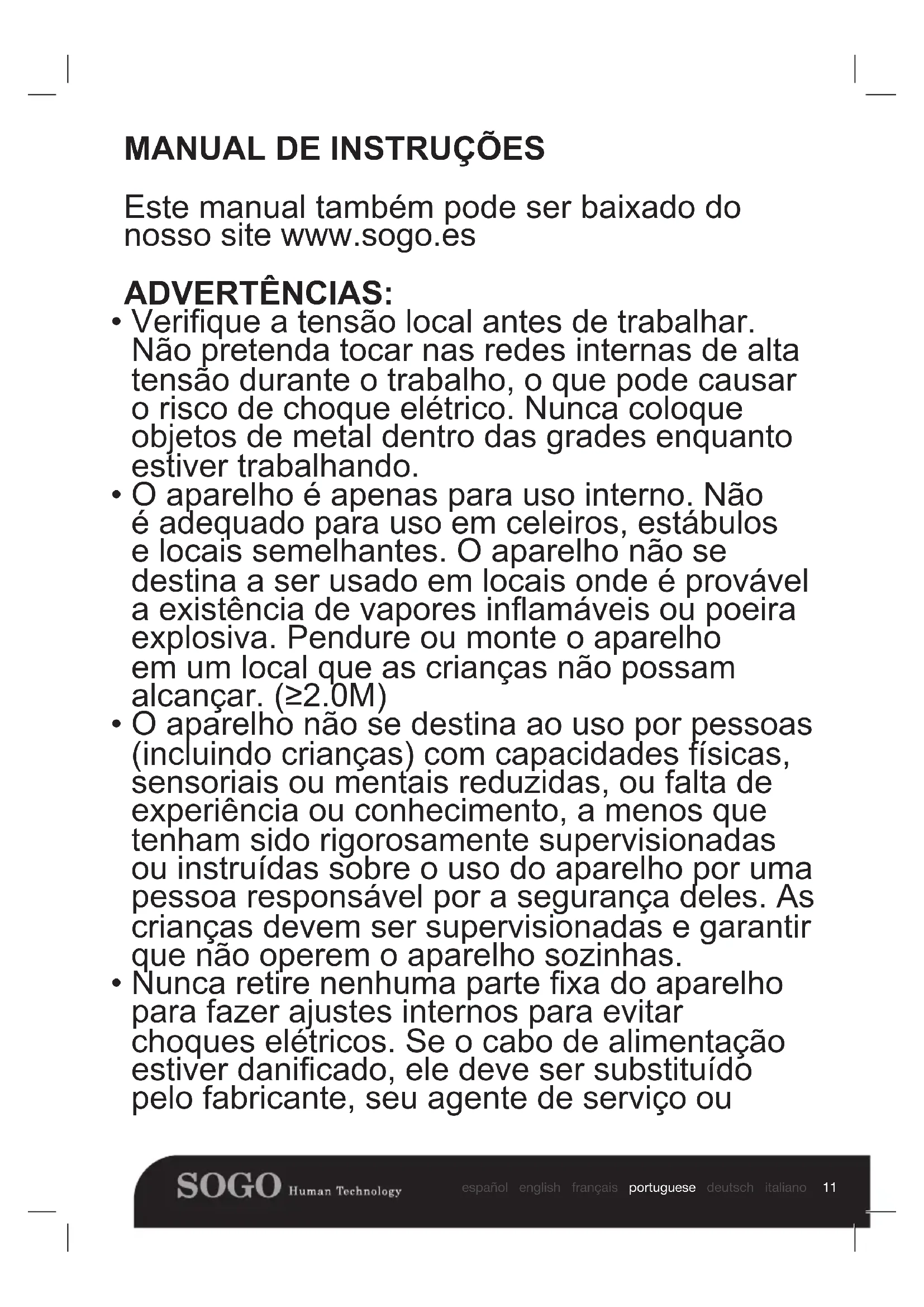 Este manual também pode ser baixado do nosso site www.sogo.es ADVERTÊNCIAS: