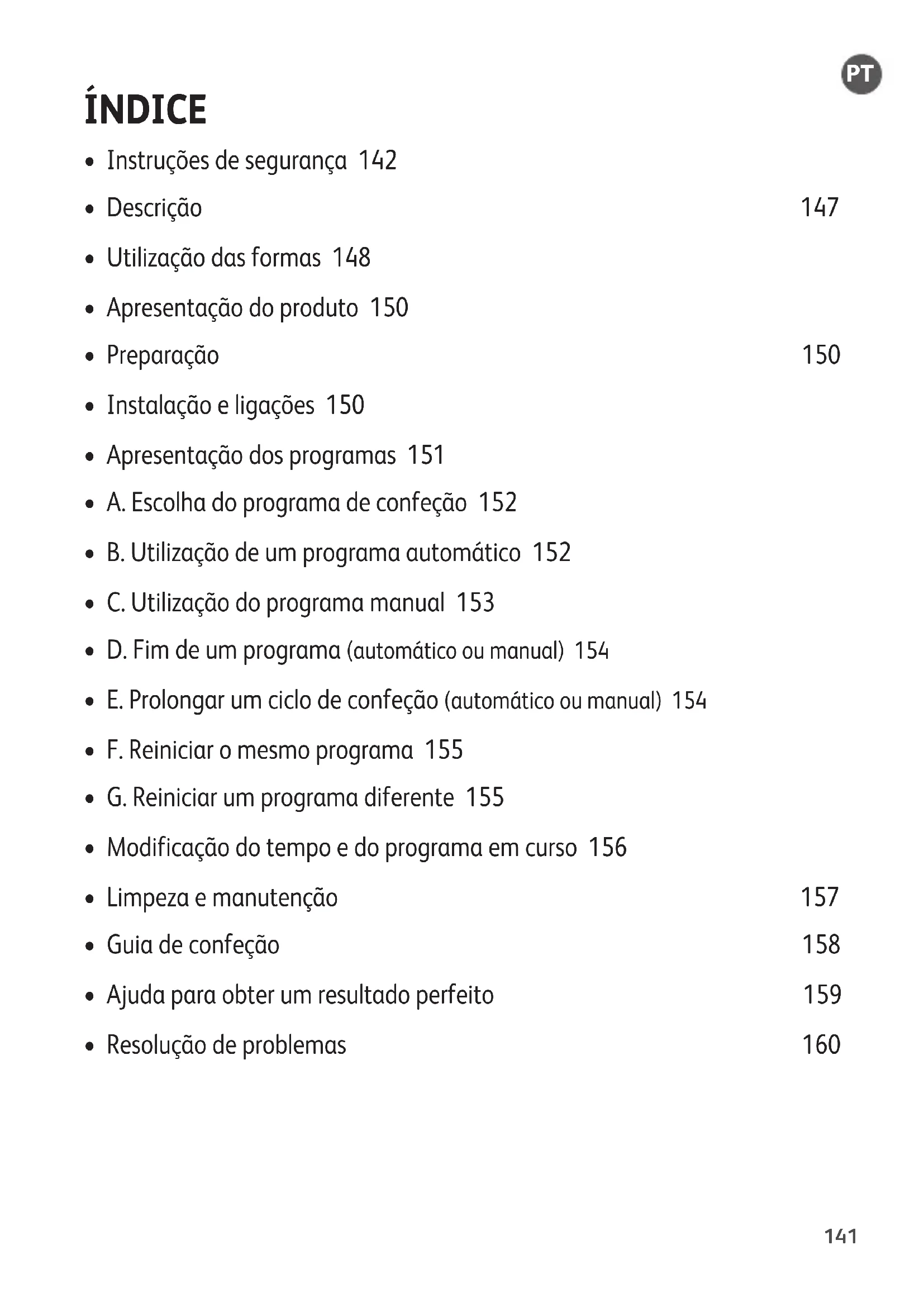 PTApresentação dos programas No caso de dúvidas acerca do modo de confeção a utilizar, consulte o guia de confeção na página