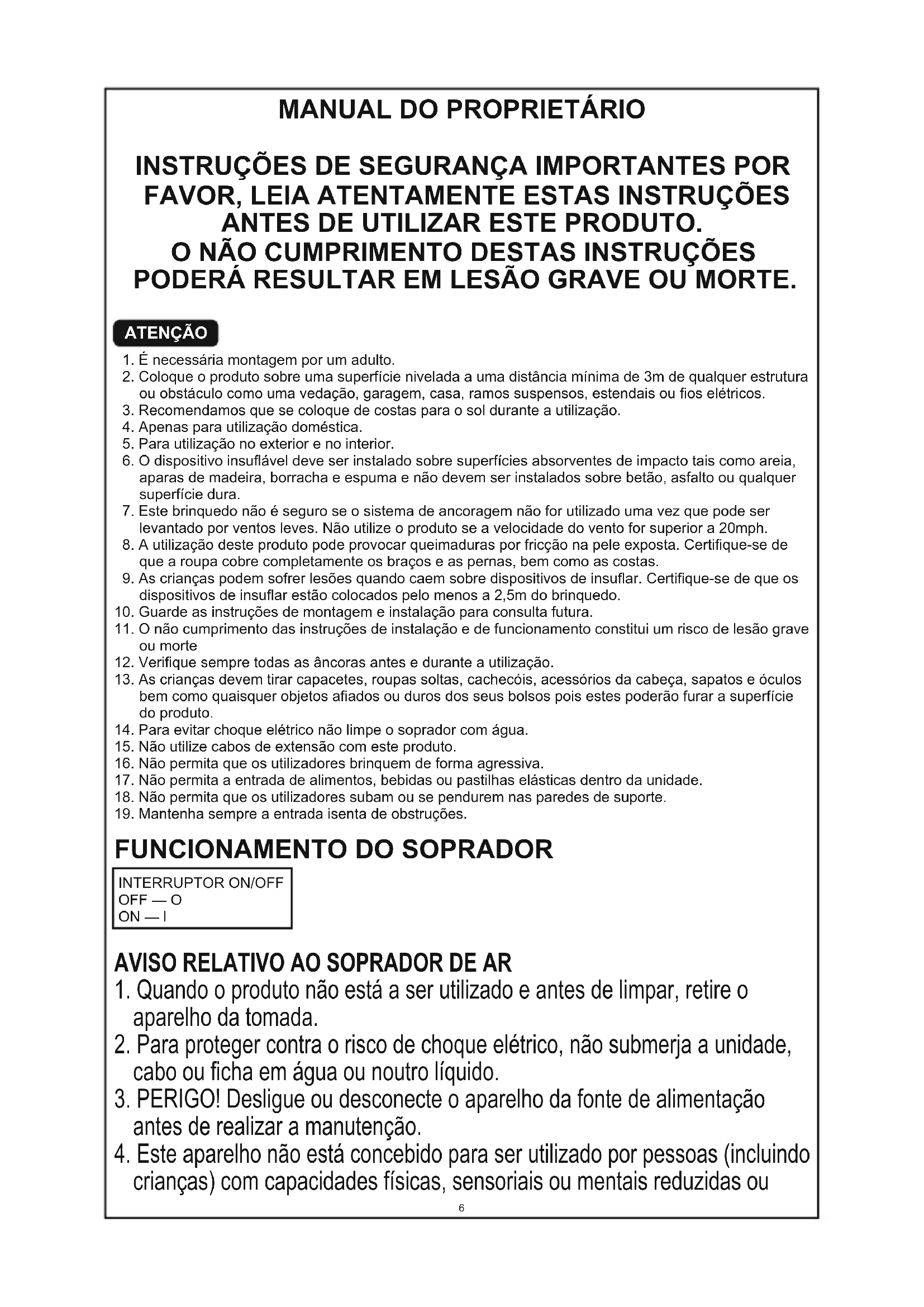 para evitar tropeçar nas mesmas. Atenção: Após encher, o soprador deve funcionar continuamente enquanto as crianças estão a brincar.