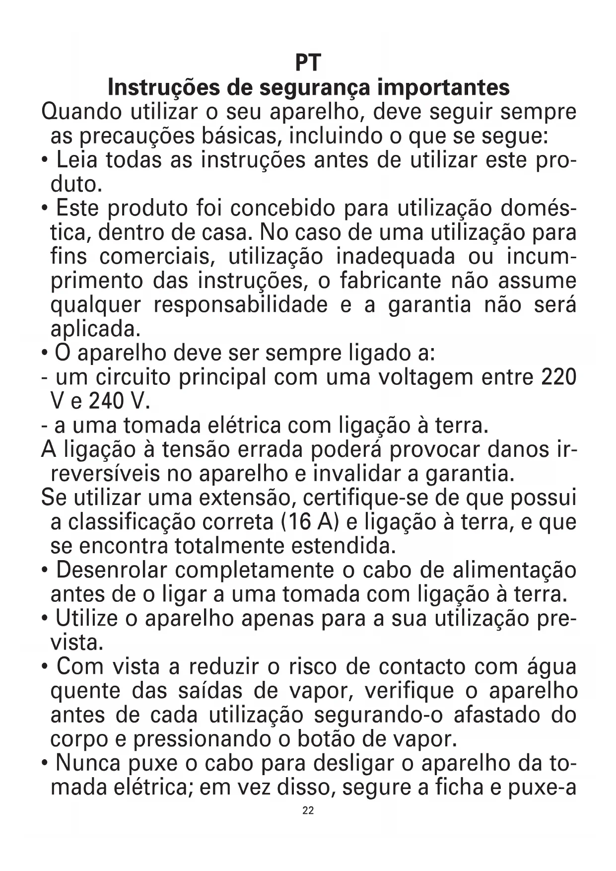 - Nunca puxe o cabo para desligar o aparelho da to- mada elétrica; em vez disso, segure a ficha e puxe-a 9100021252-01 IS6300 M2-D2.indd 22 21/07/2016 10:4122 23 para desligar a ficha de forma a desligar o aparelho.
