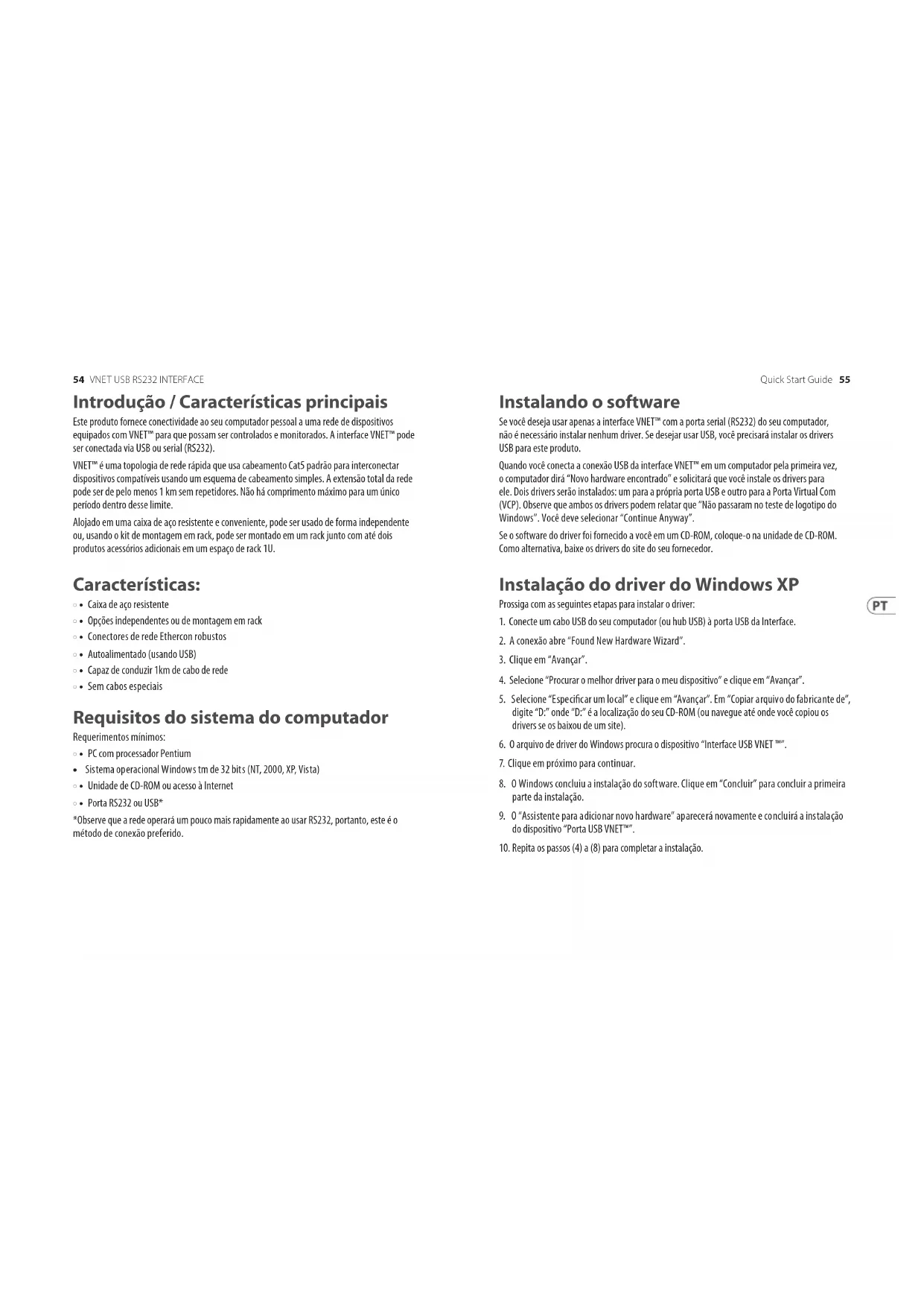 10. Repita os passos (4) a (8) para completar a instalação.56 57Quick Start GuideVNET USB RS232 INTERFACE