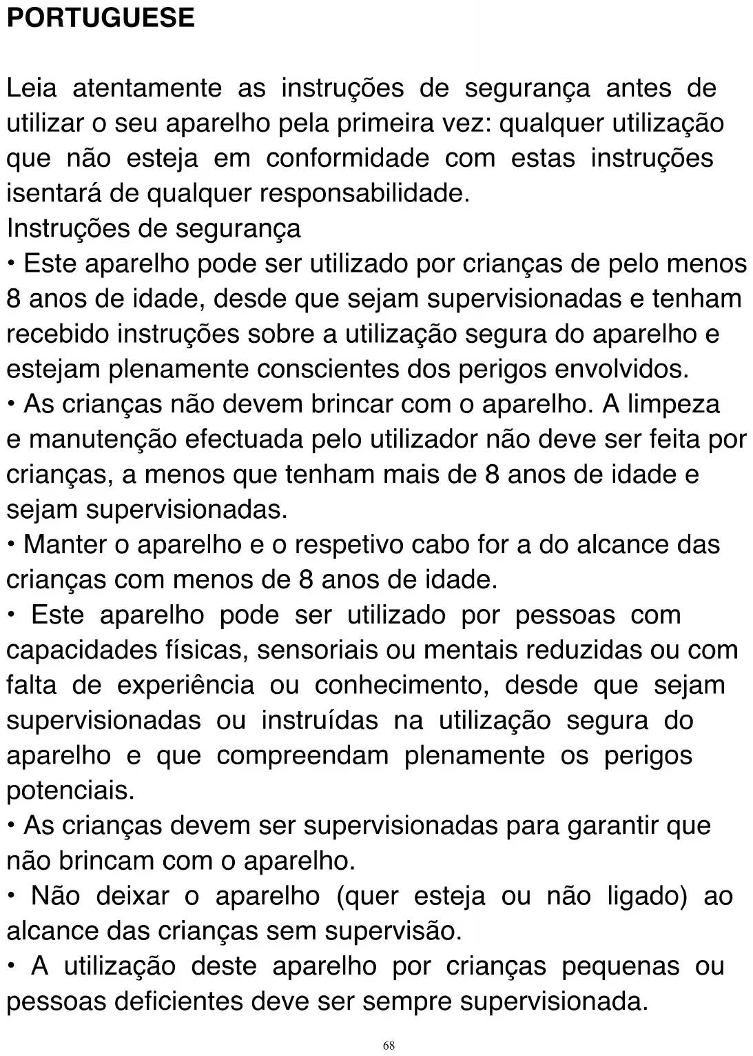 - A utilização deste aparelho por crianças pequenas ou pessoas deficientes deve ser sempre supervisionada.69