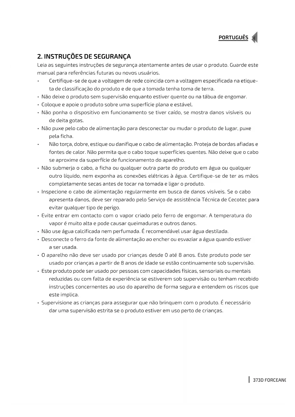 - Não deixe o produto sem supervisão enquanto estiver quente ou na tábua de engomar.