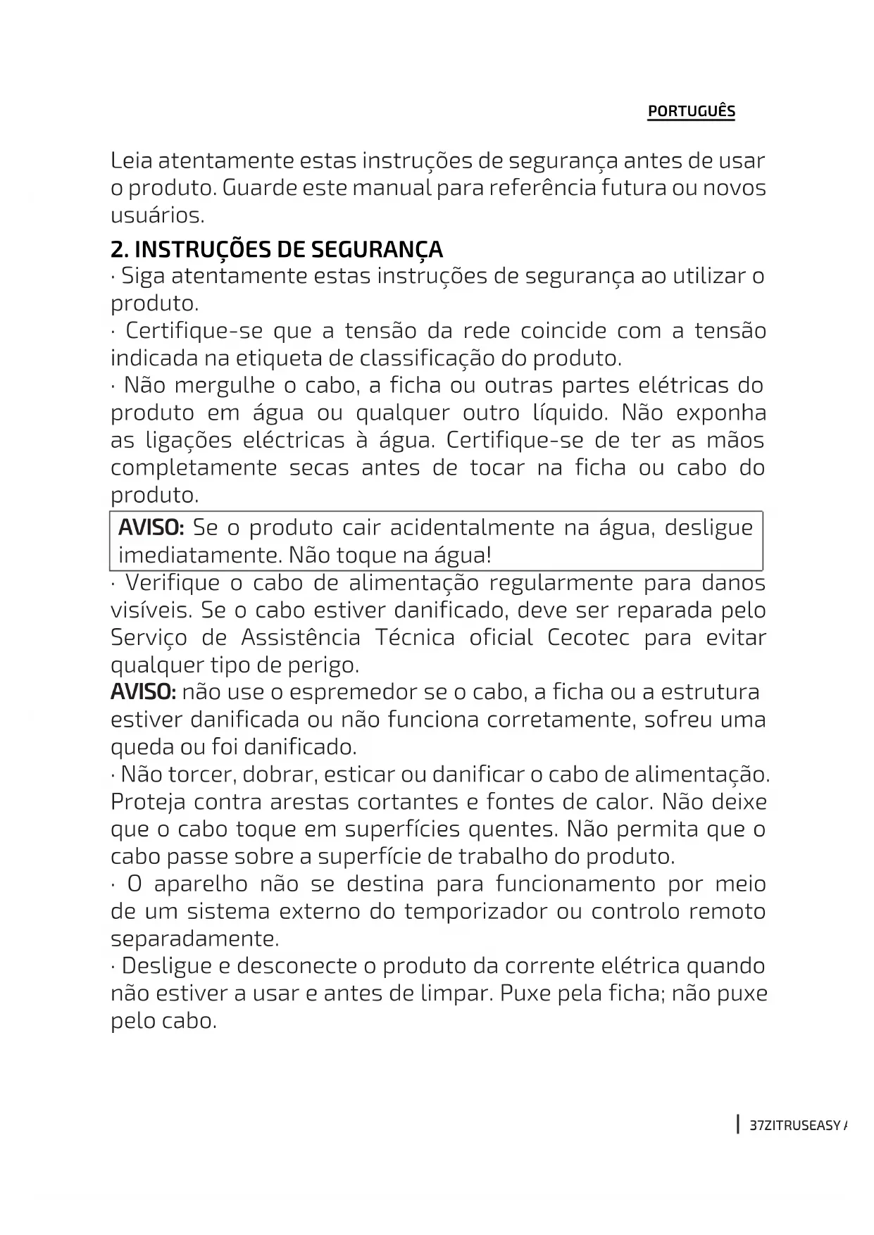 Encontre gratuitamente o manual do aparelho ZitrusEasy Adjust CECOTEC em formato PDF.