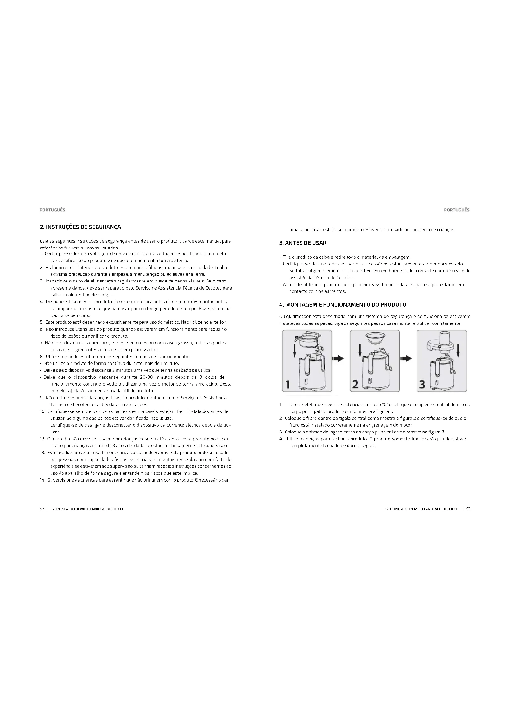 - 2: Alta Este modo pode ser utilizado para processar qualquer tipo de frutas e legumes.56 57STRONG-EXTREMETITANIUM 19000 XXLSTRONG-EXTREMETITANIUM 19000 XXL AVISO: veja a secção de “Conselhos” para obter mais informação sobre as frutas e legumes a processar.