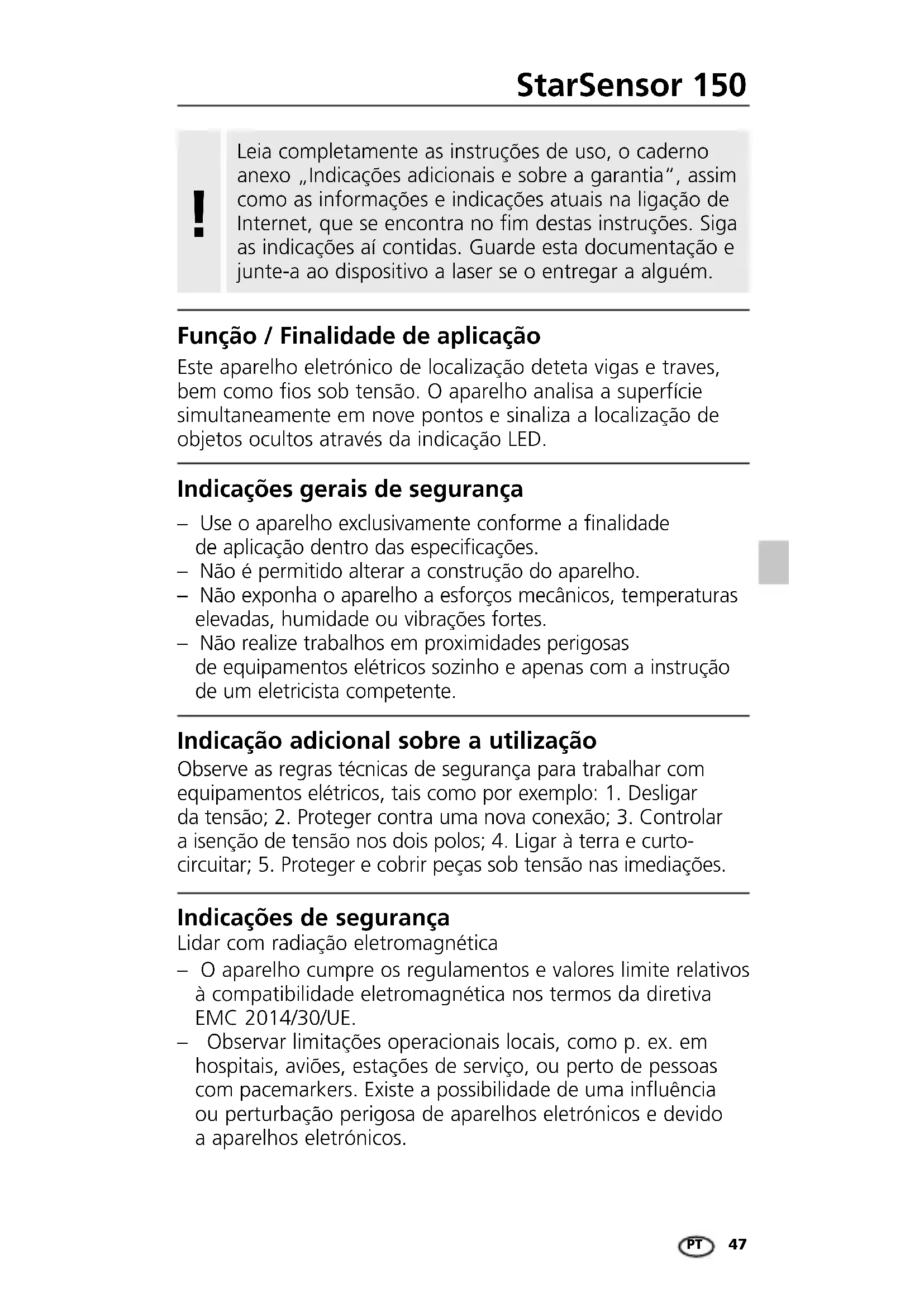 Encontre gratuitamente o manual do aparelho StarSensor 150 Laserliner em formato PDF.