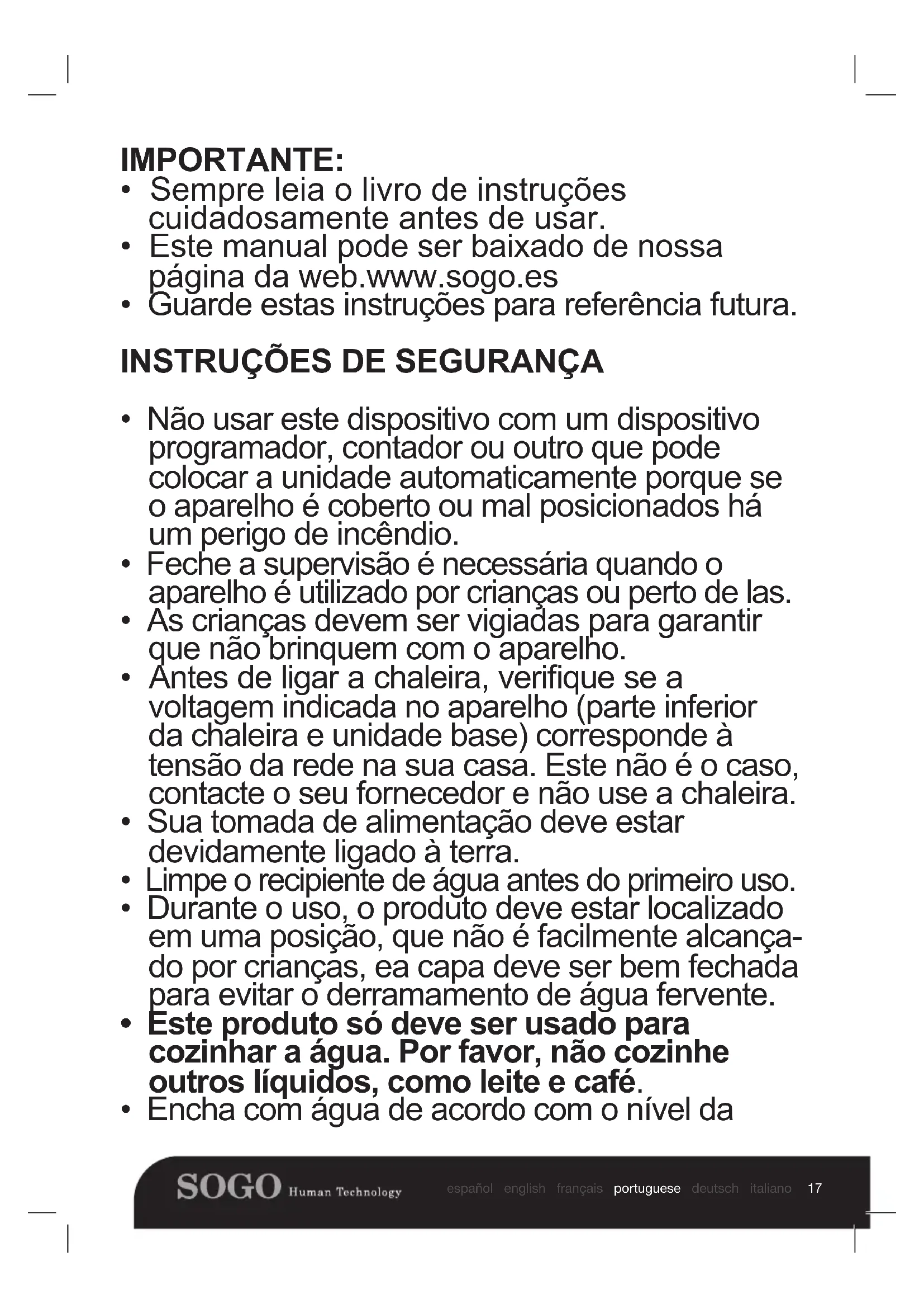 SS7760 - Chaleira Sogo - Manual de utilização gratuito