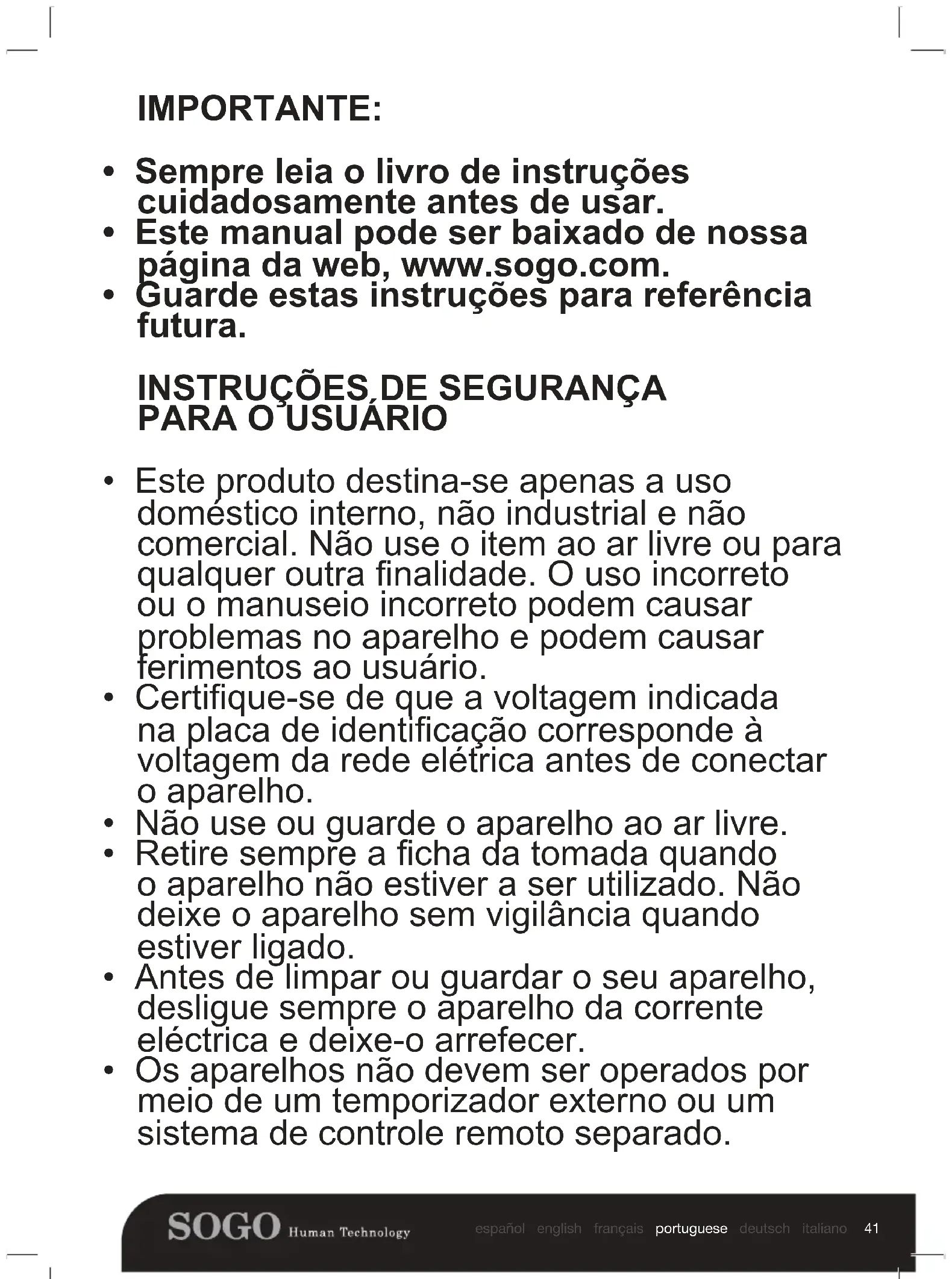 - Este manual pode ser baixado de nossa página da web, www.sogo.com.