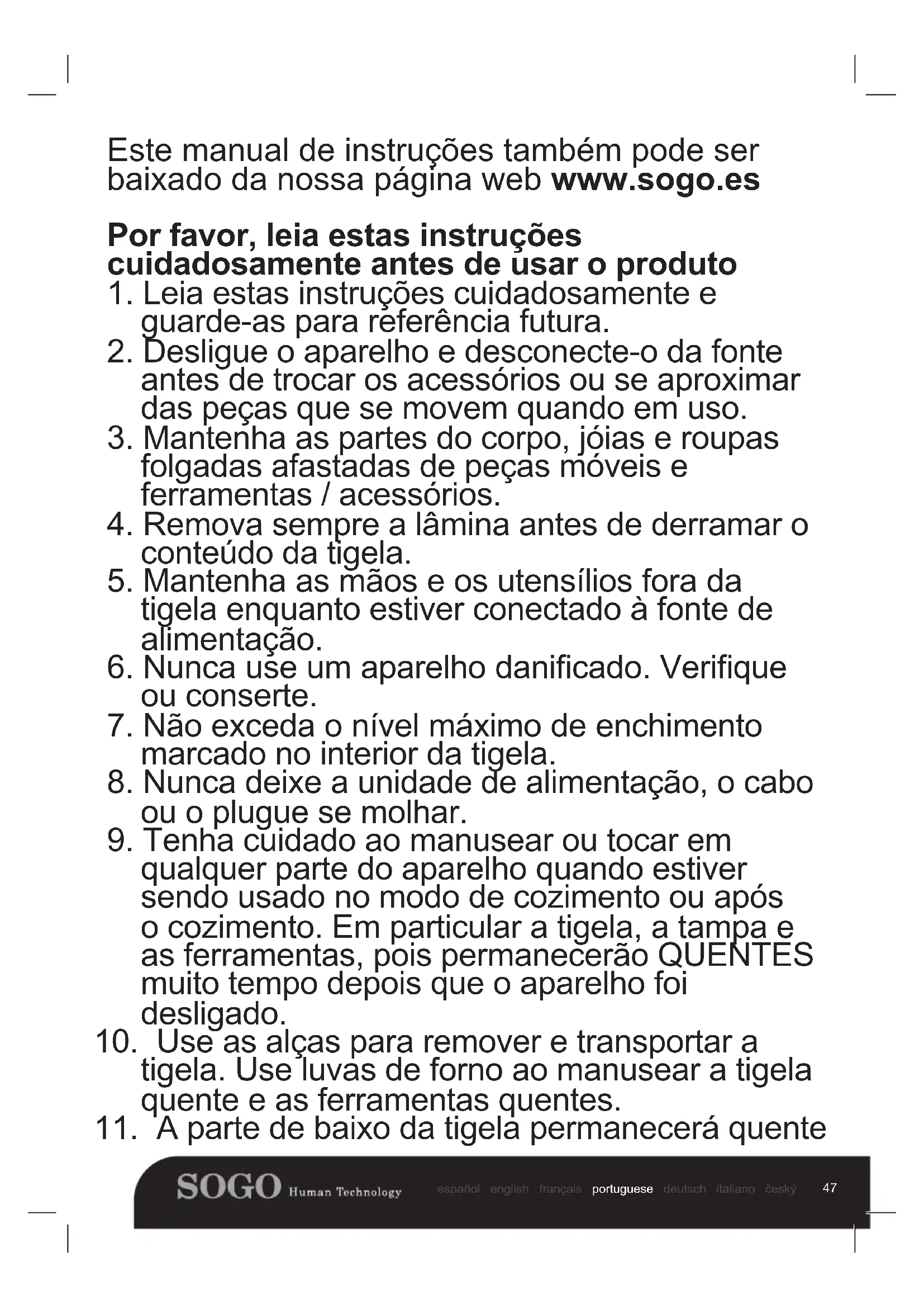 SS14565 - Outros aparelhos de cozinha Sogo - Manual de utilização gratuito