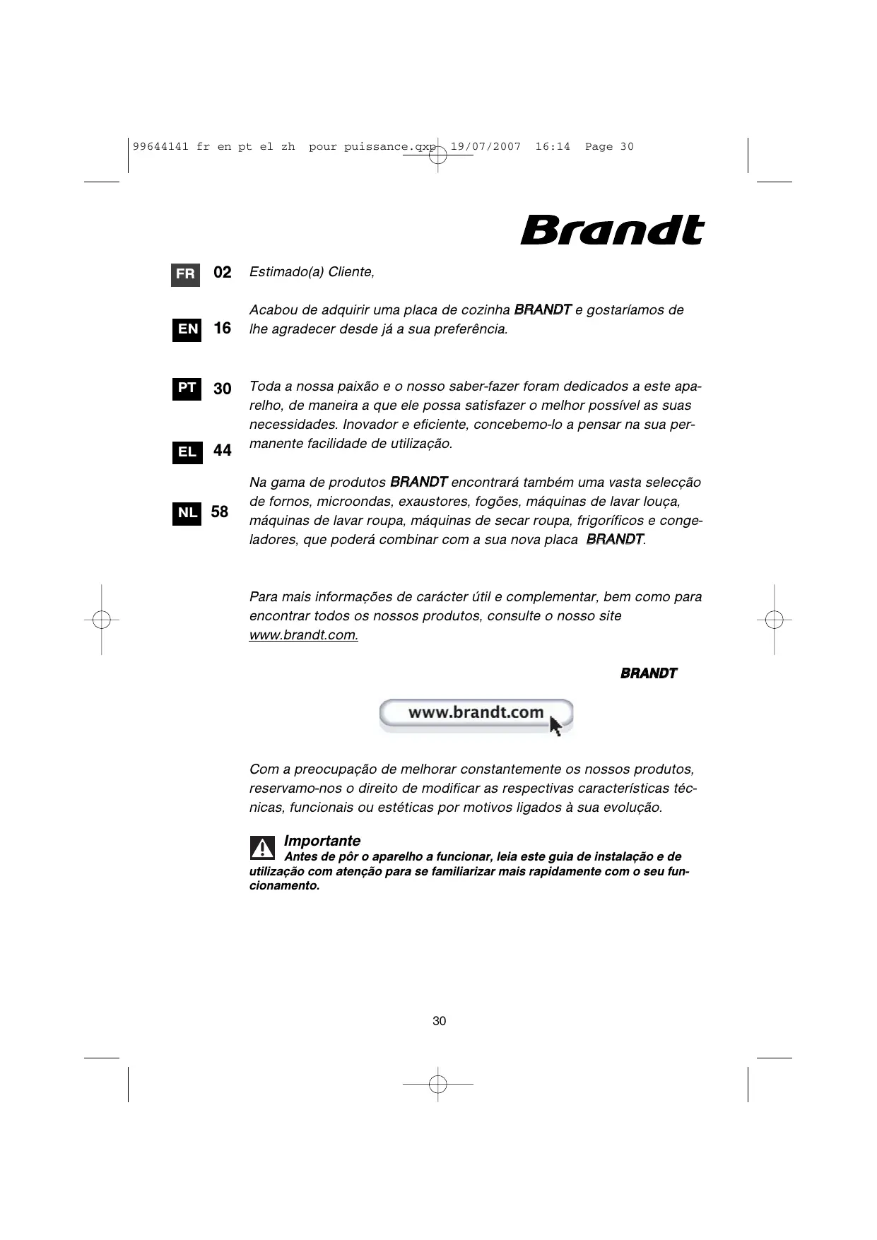 Encontre gratuitamente o manual do aparelho TI712WT1 BRANDT em formato PDF.