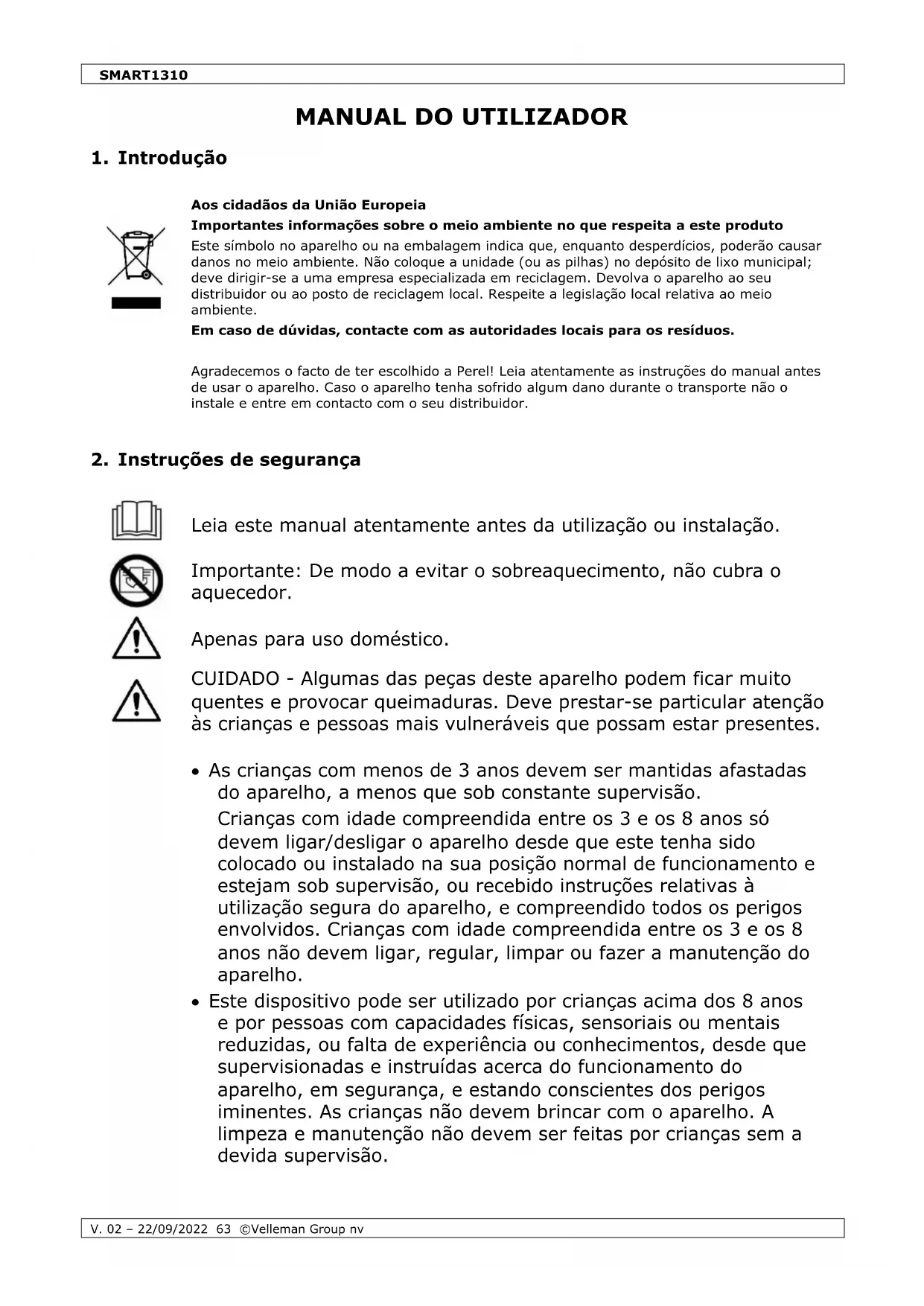 MANUAL DE UTILIZADOR SMART1310 Perel