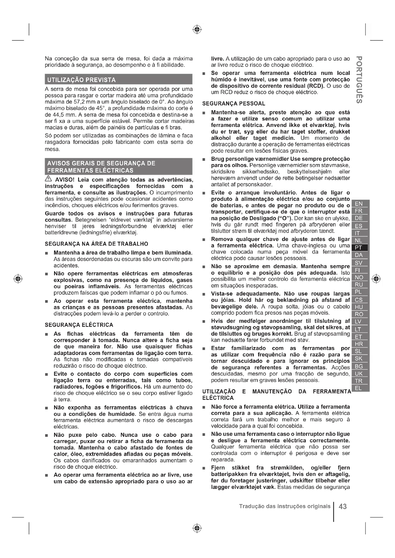 Vertaling van de originele instructiesNa conceção da sua serra de mesa, foi dada a máxima prioridade à segurança, ao desempenho e à fi abilidade.