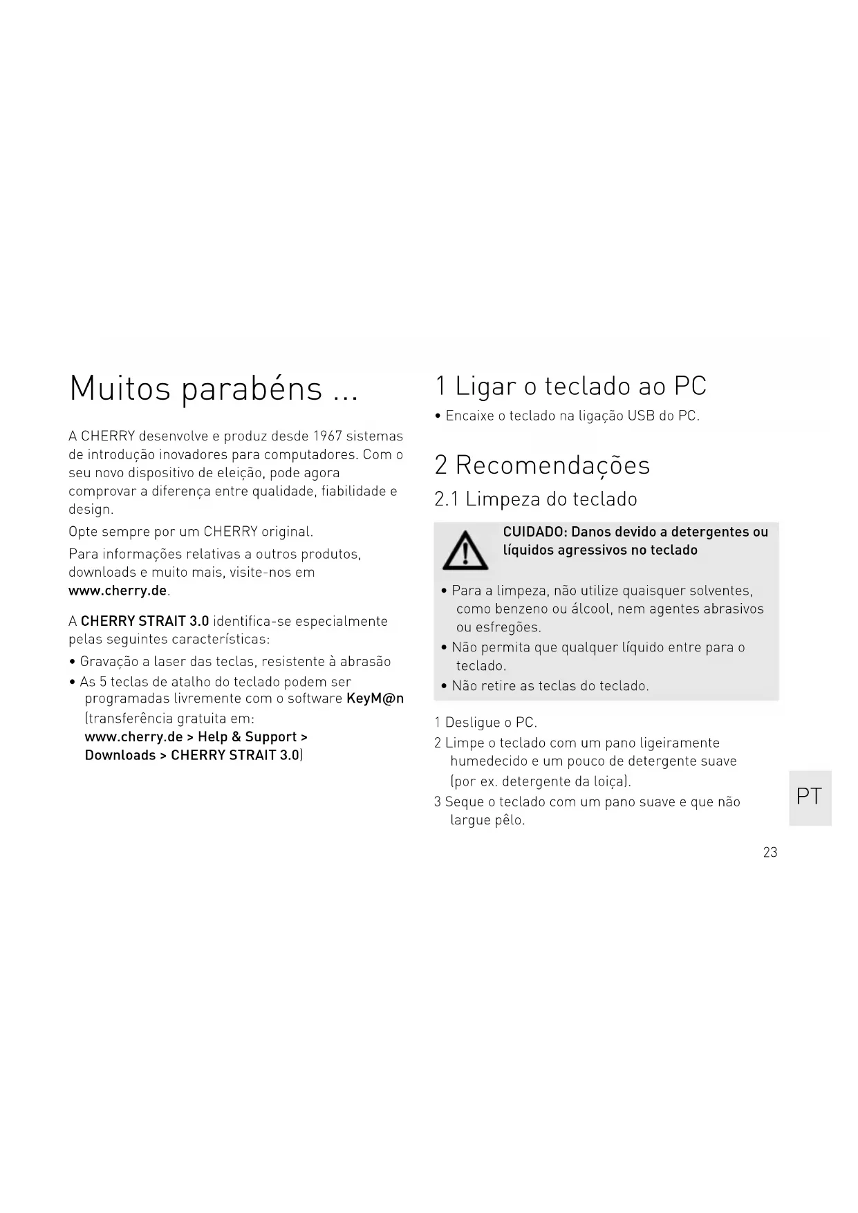 STRAIT 3.0 - Teclado Cherry - Manual de utilização gratuito