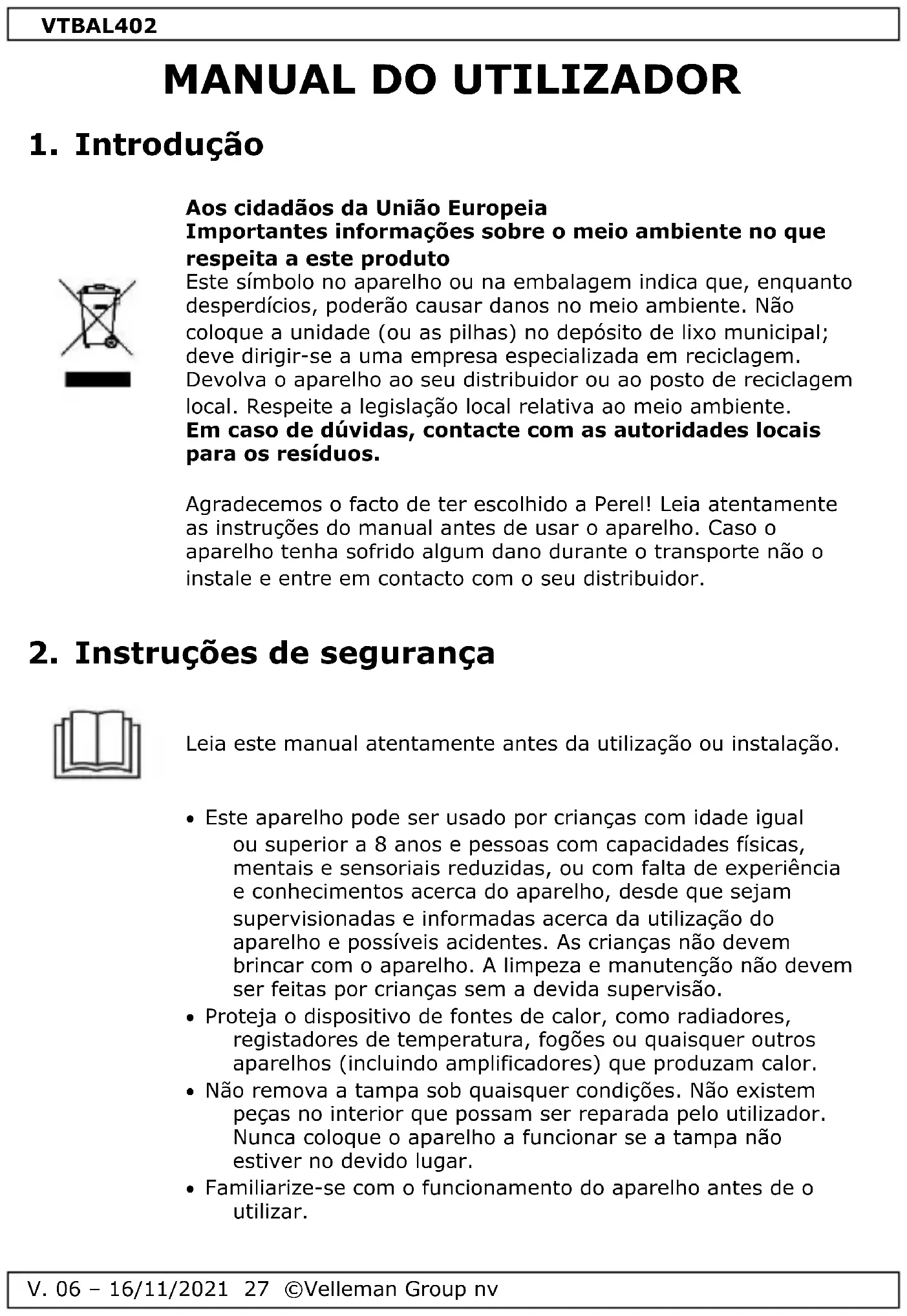 MANUAL DE UTILIZADOR VTBAL402 Perel