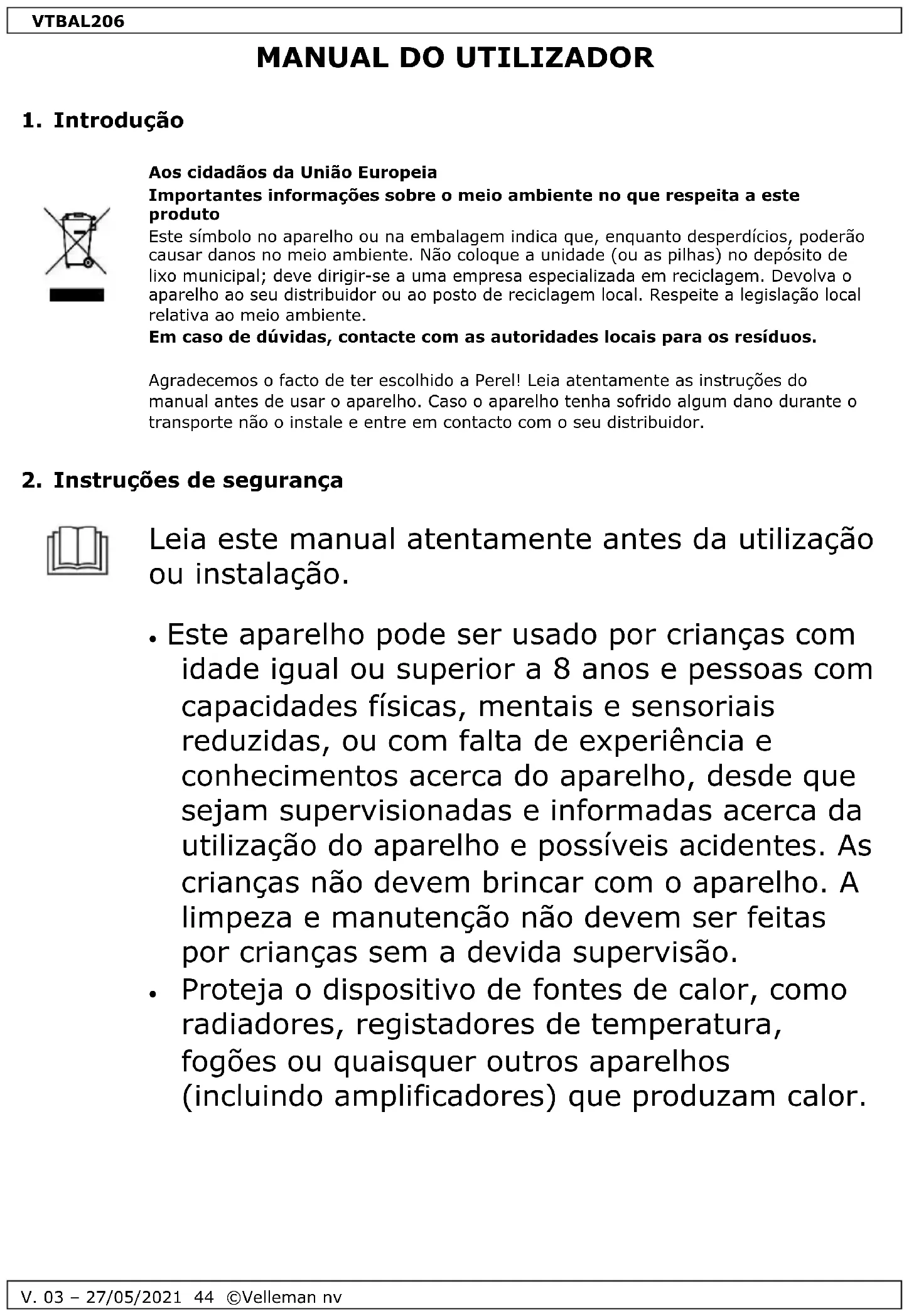 MANUAL DE UTILIZADOR VTBAL206 Perel
