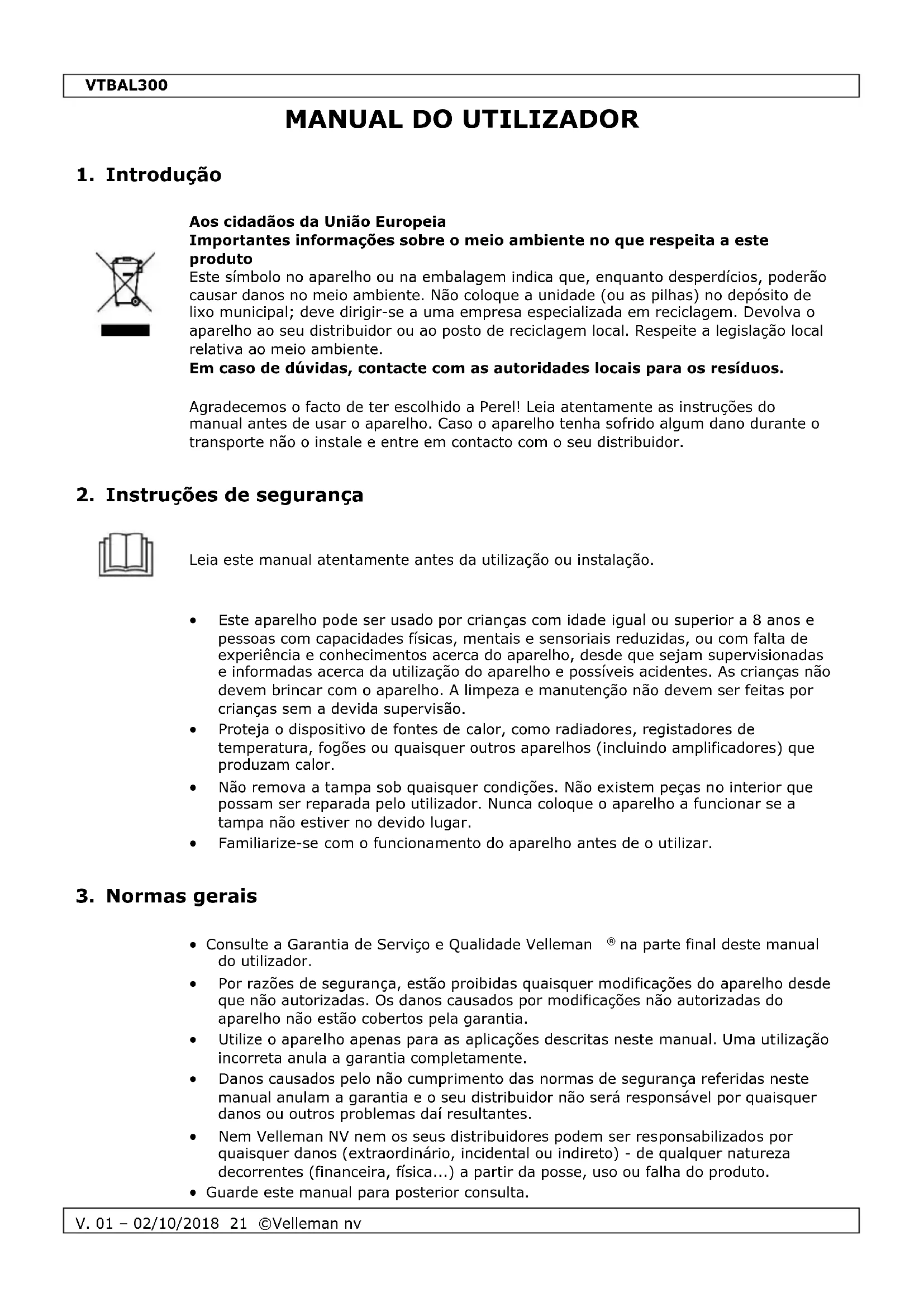 VTBAL300 - Balanças Perel - Manual de utilização gratuito