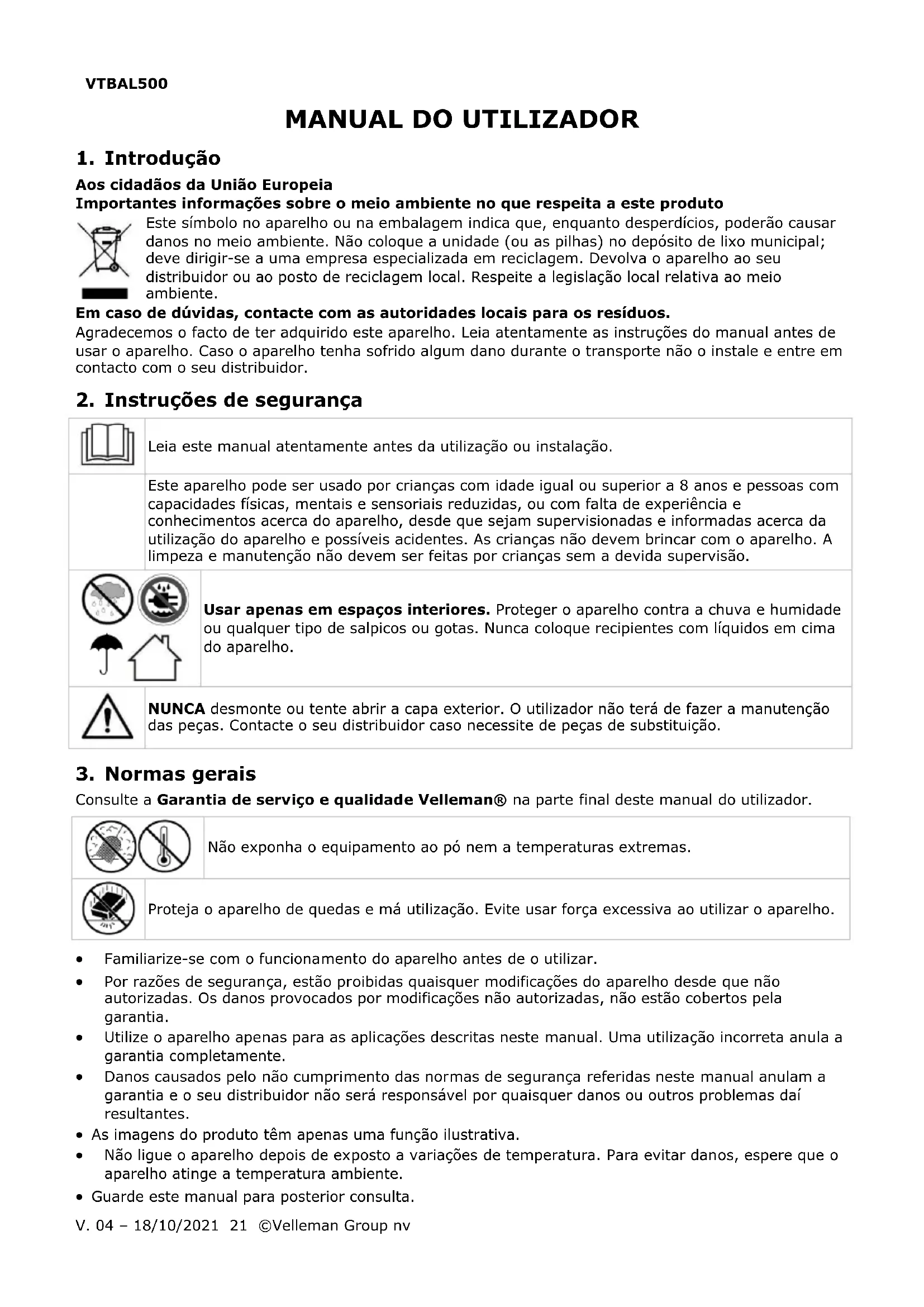 MANUAL DE UTILIZADOR VTBAL500 Perel