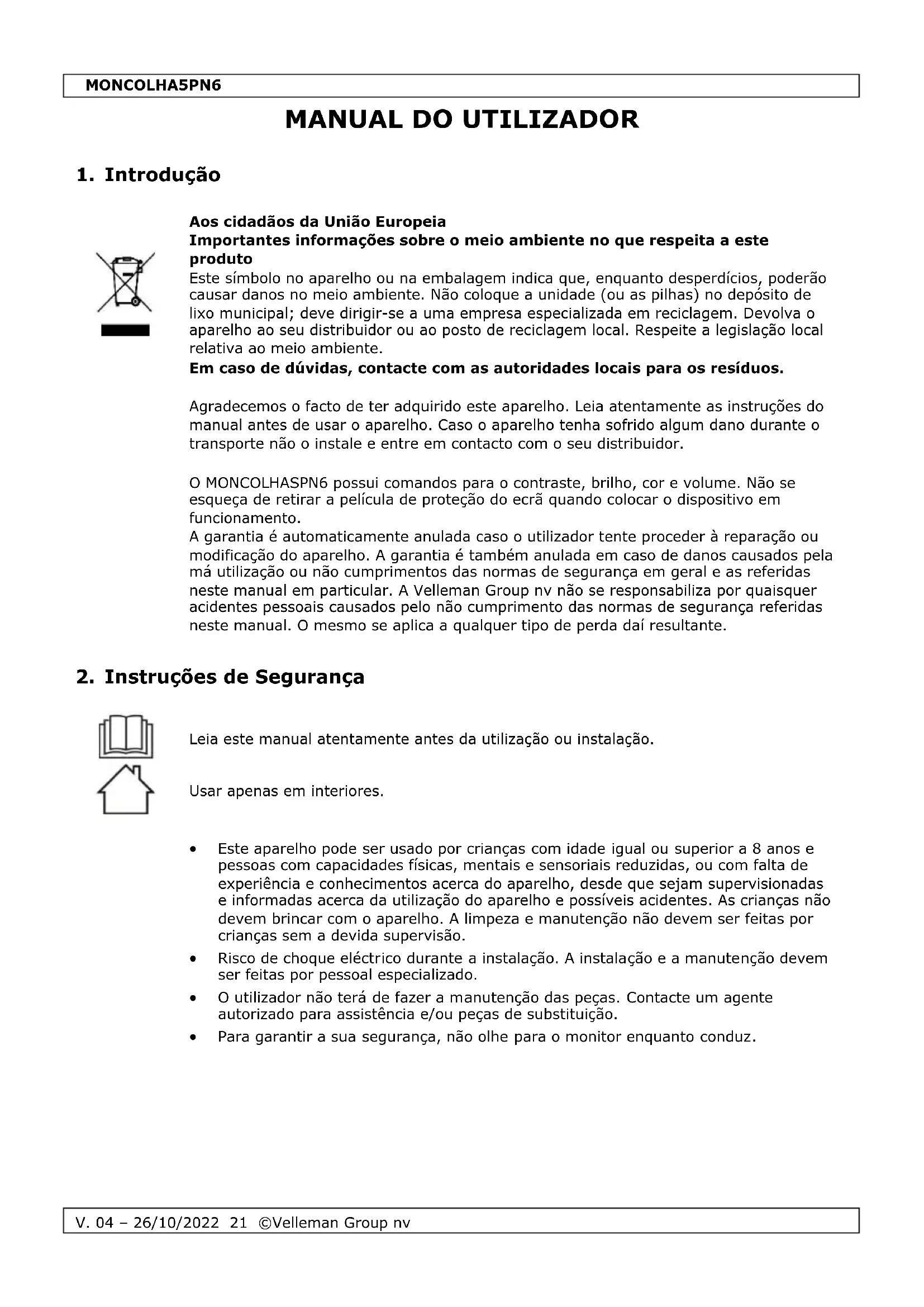 MANUAL DE UTILIZADOR MONCOLHA5PN6 VELLEMAN