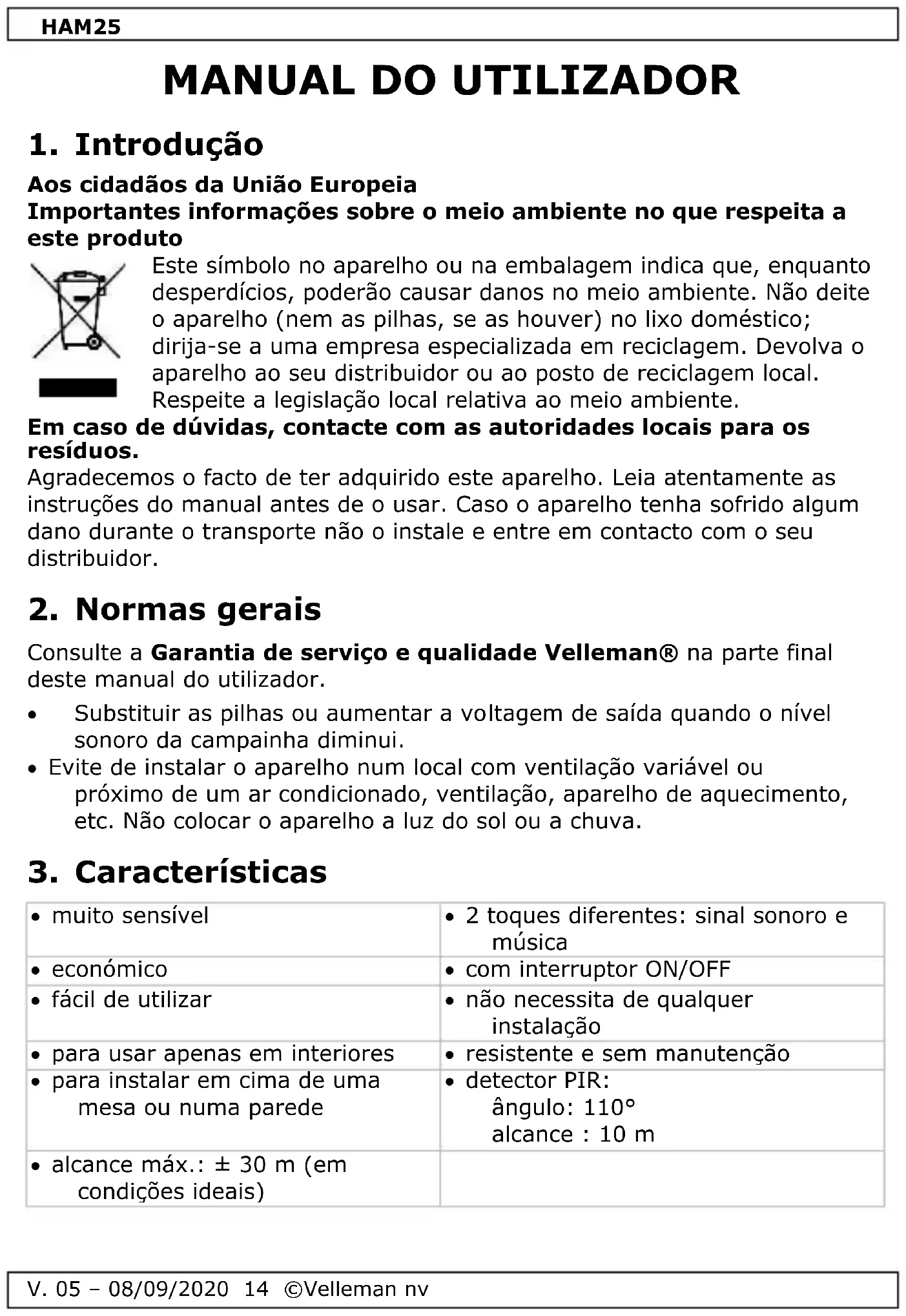 Encontre gratuitamente o manual do aparelho HAM25 VELLEMAN em formato PDF.