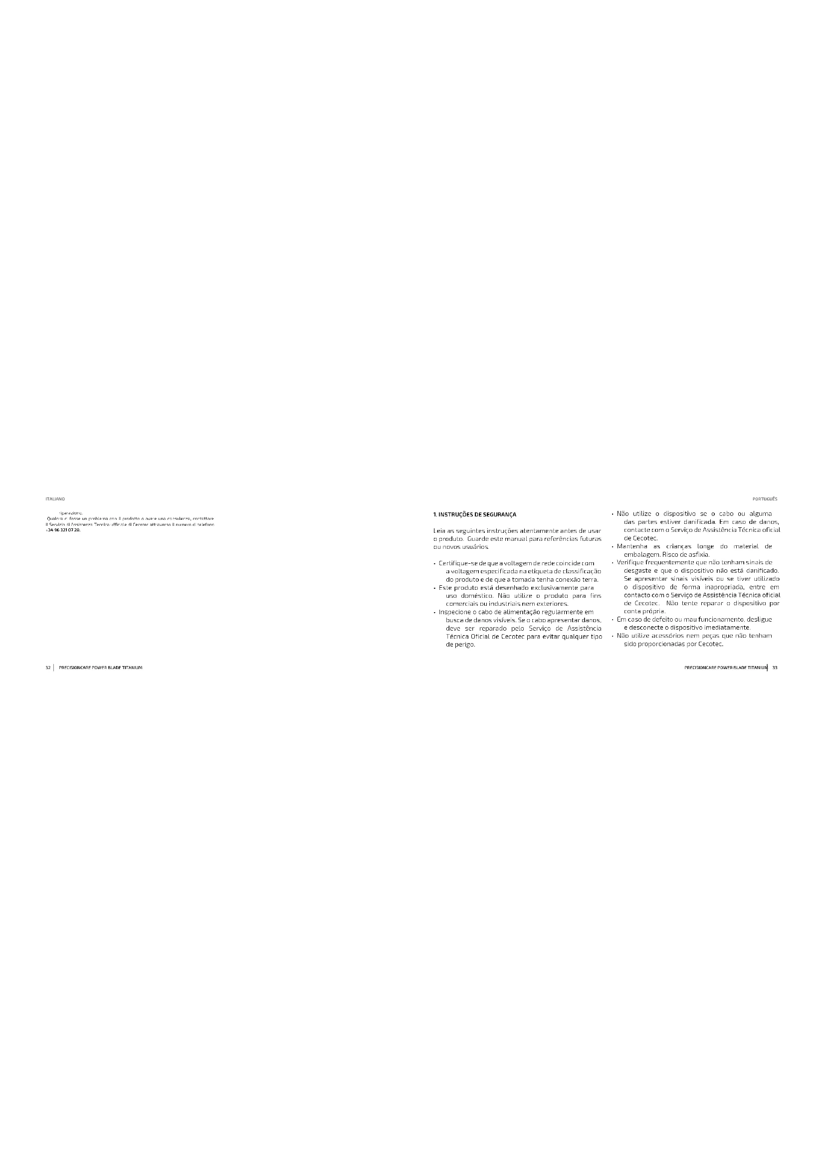 - Este aparelho não pode ser usado por crianças nem pessoas com capacidades físicas, sensoriais ou mentais reduzidas ou com falta de experiência e conhecimento Supervisione as crianças de que não brinquem com o produto.