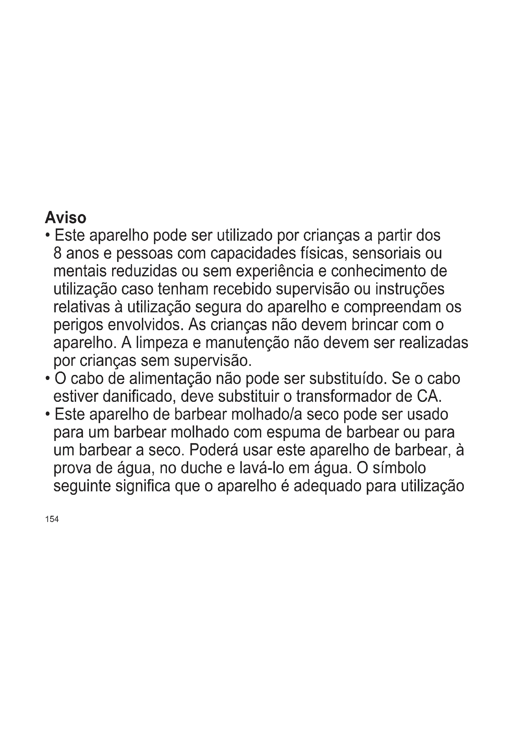 Caso contrário, poderá ocorrer um choque elétrico ou ferimentos. O aparelho de barbear não deve ser usado por familiares ou outras pessoas