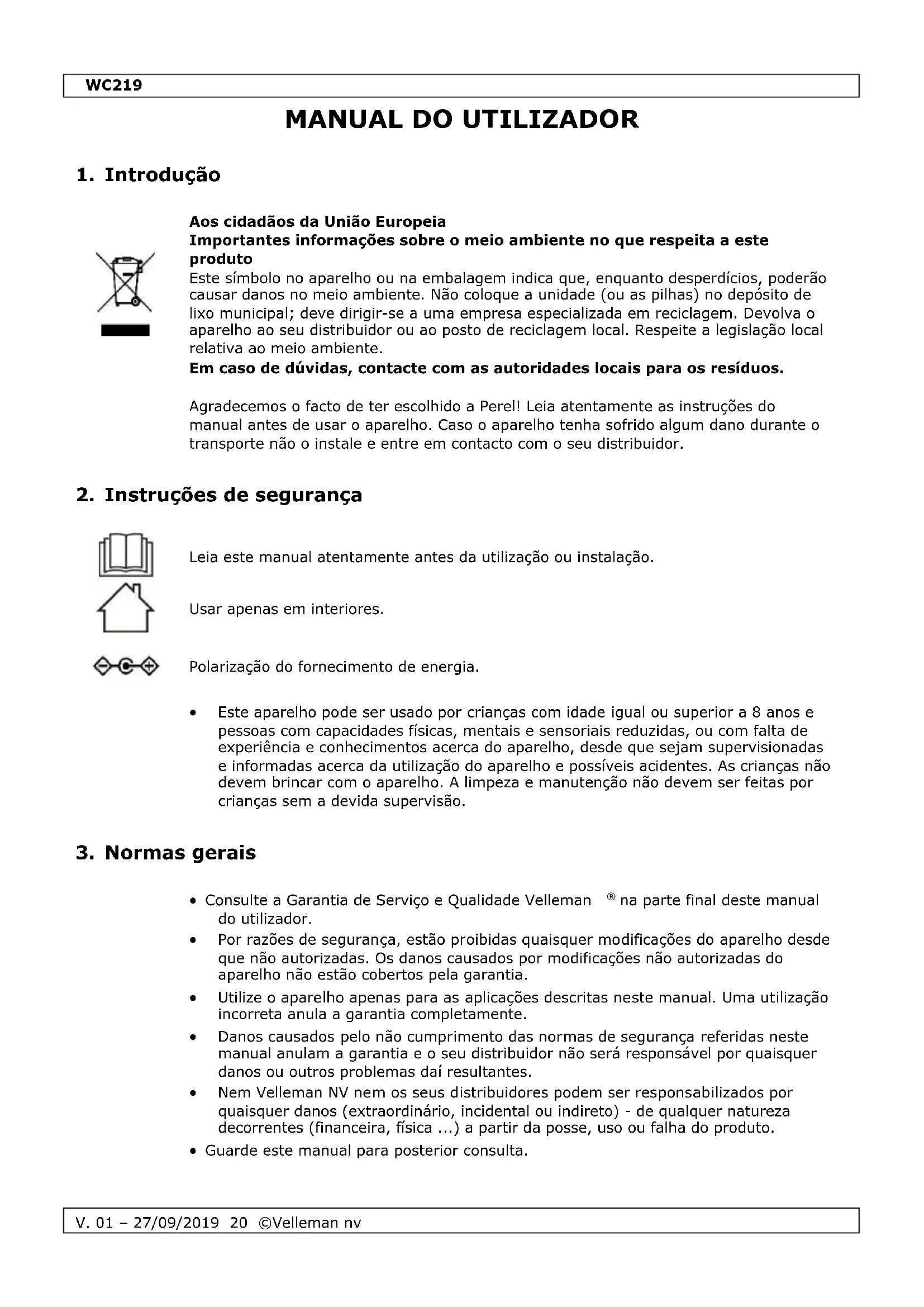 MANUAL DE UTILIZADOR WC219 Perel