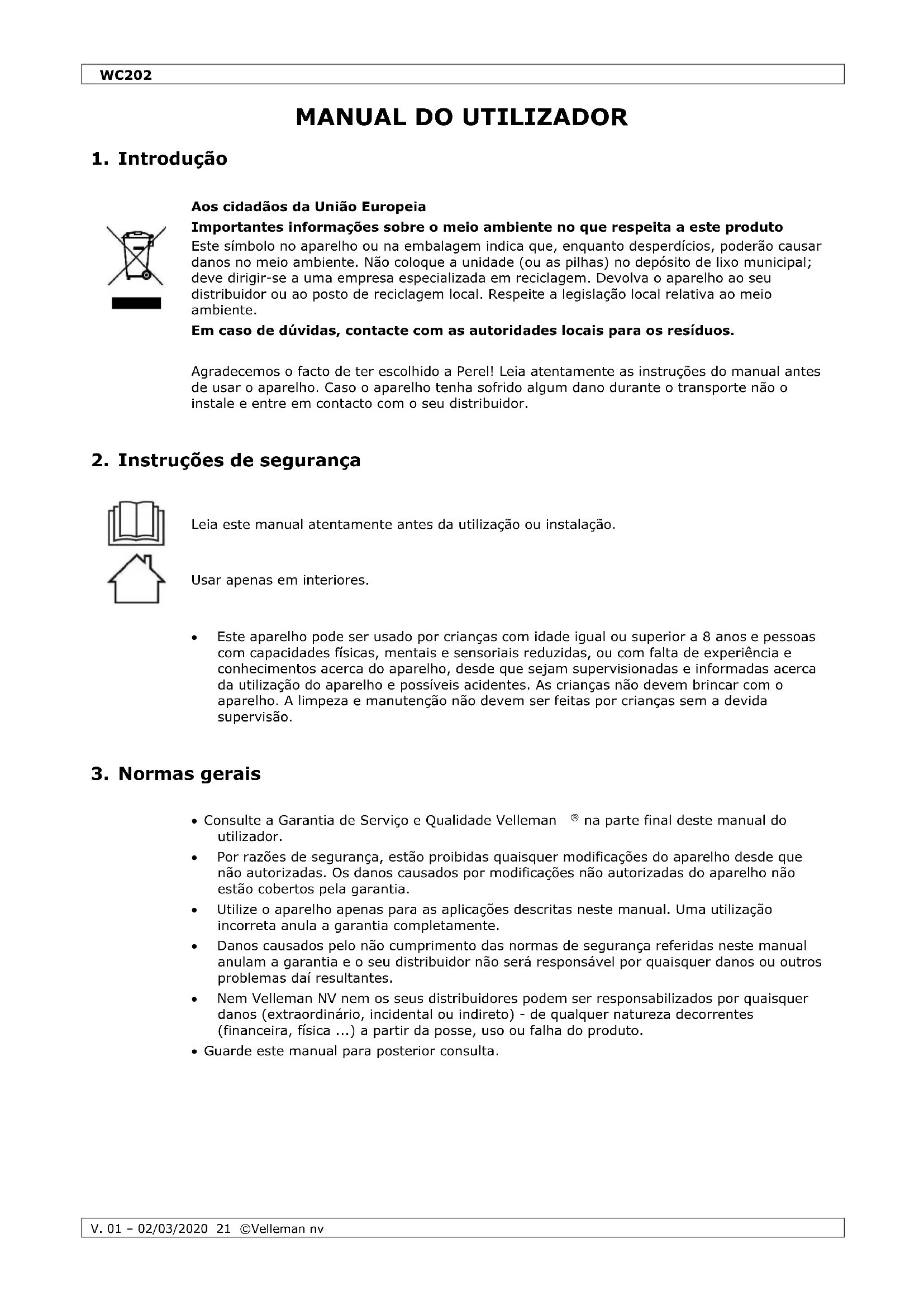 MANUAL DE UTILIZADOR WC202 Perel