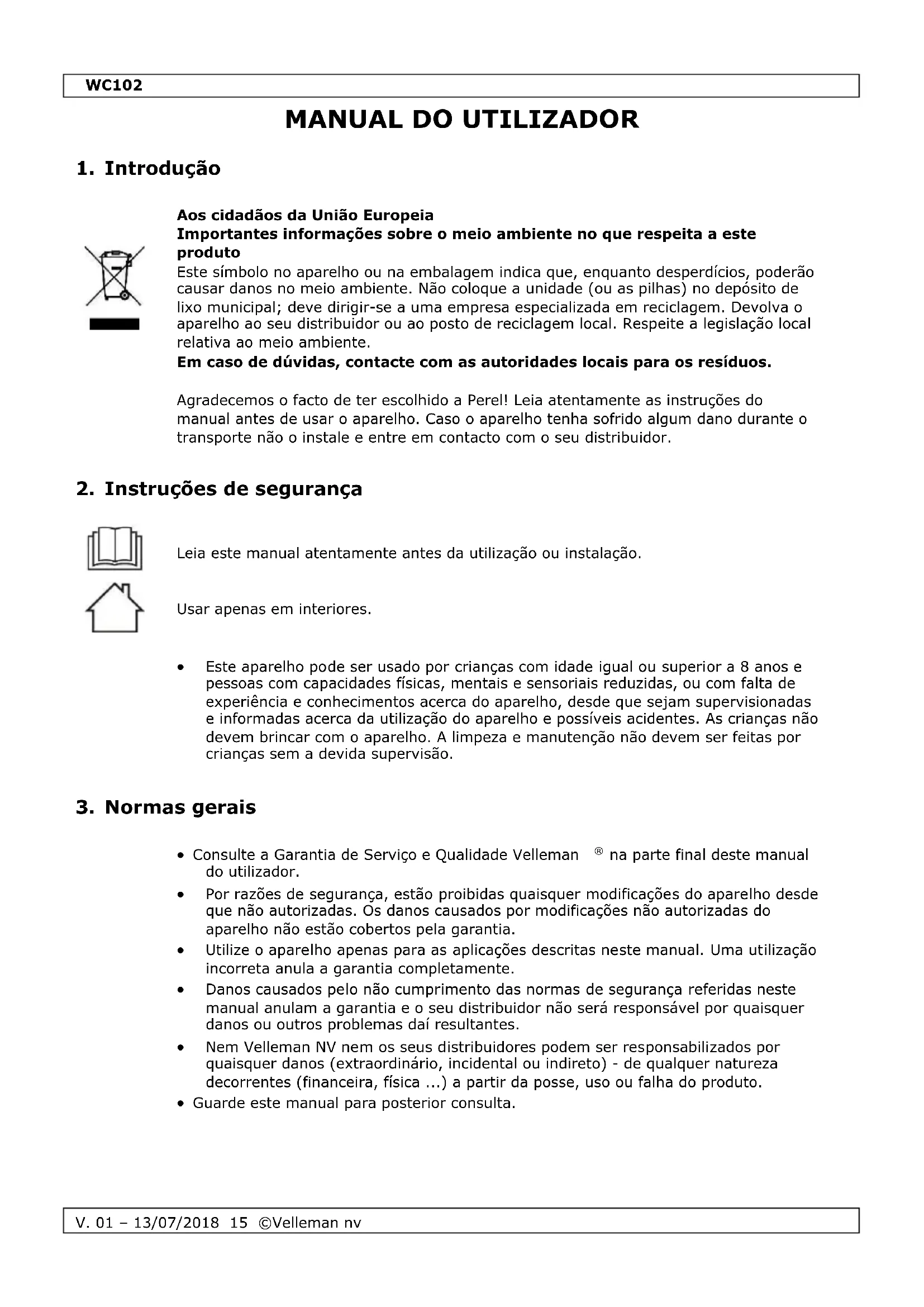 MANUAL DE UTILIZADOR WC102 Perel