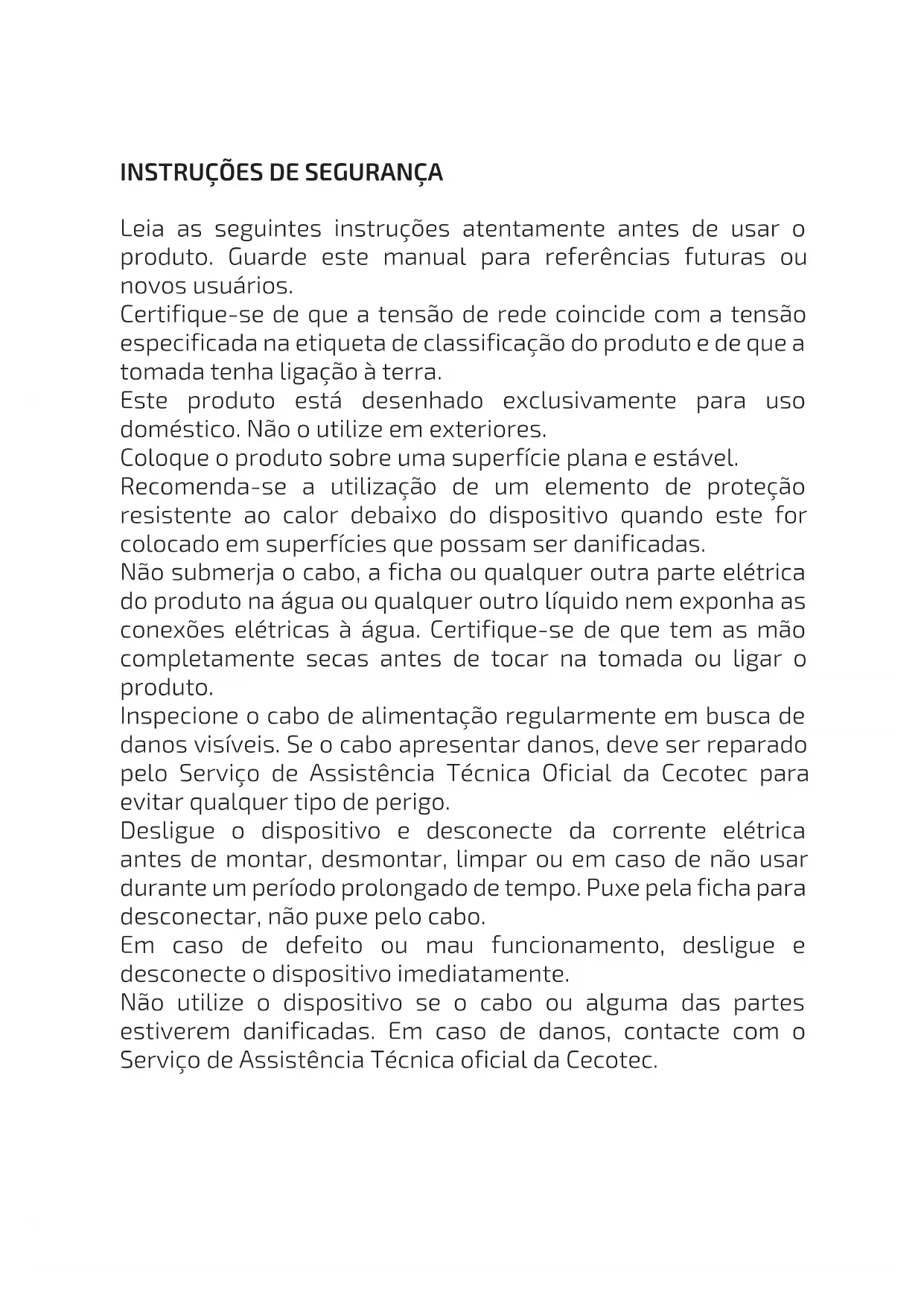 Este produto tem uma garantia de 2 anos desde a data de compra, sempre e quando se conserve e envie a fatura de compra, o produto esteja em perfeito estado físico e se lhe dê um uso adequado tal e como se indica neste Manual de Instruções. A garantia não cobrirá: Se o produto tiver sido usado fora da sua capacidade ou utilidade, maltratado, batido, exposto à humidade, submergido em algum líquido ou substância corrosiva, assim como qualquer outra falta atribuível ao consumidor. Se o produto foi desmontado, modificado ou reparado por pessoas não autorizadas pelo SAT oficial da Cecotec. Se a ocorrência foi originada pelo desgaste normal das peças devido ao uso. O serviço de garantia cobre todos os defeitos de fabricação durante 2 anos com base à legislação vigente, exceto peças consumíveis. Em caso de mal uso por parte do usuário, o serviço de garantia não se fará responsável pela reparação. Se em alguma ocasião deteta uma ocorrência com o produto ou tem alguma consulta, entre em contacto com o Serviço de Assistência Técnica oficial da Cecotec através do número de telefone +34 96 321 07 28. 03093_03094_03095_03096_Tasty&Grill 2000 Inox_Stone_MixStone_LineStone_Manual_YV_01200728.indd 4603093_03094_03095_03096_Tasty&Grill 2000 Inox_Stone_MixStone_LineStone_Manual_YV_01200728.indd 46 28/7/20 13:3328/7/20 13:33TASTY&GRILL 2000 INOX / INOX STONE / INOX MIXSTONE / INOX LINESTONE