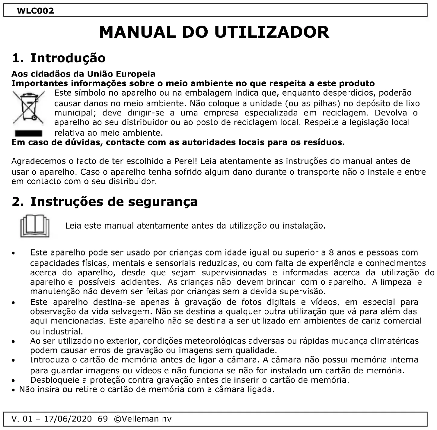 WLC002 - Câmara de vídeo Perel - Manual de utilização gratuito