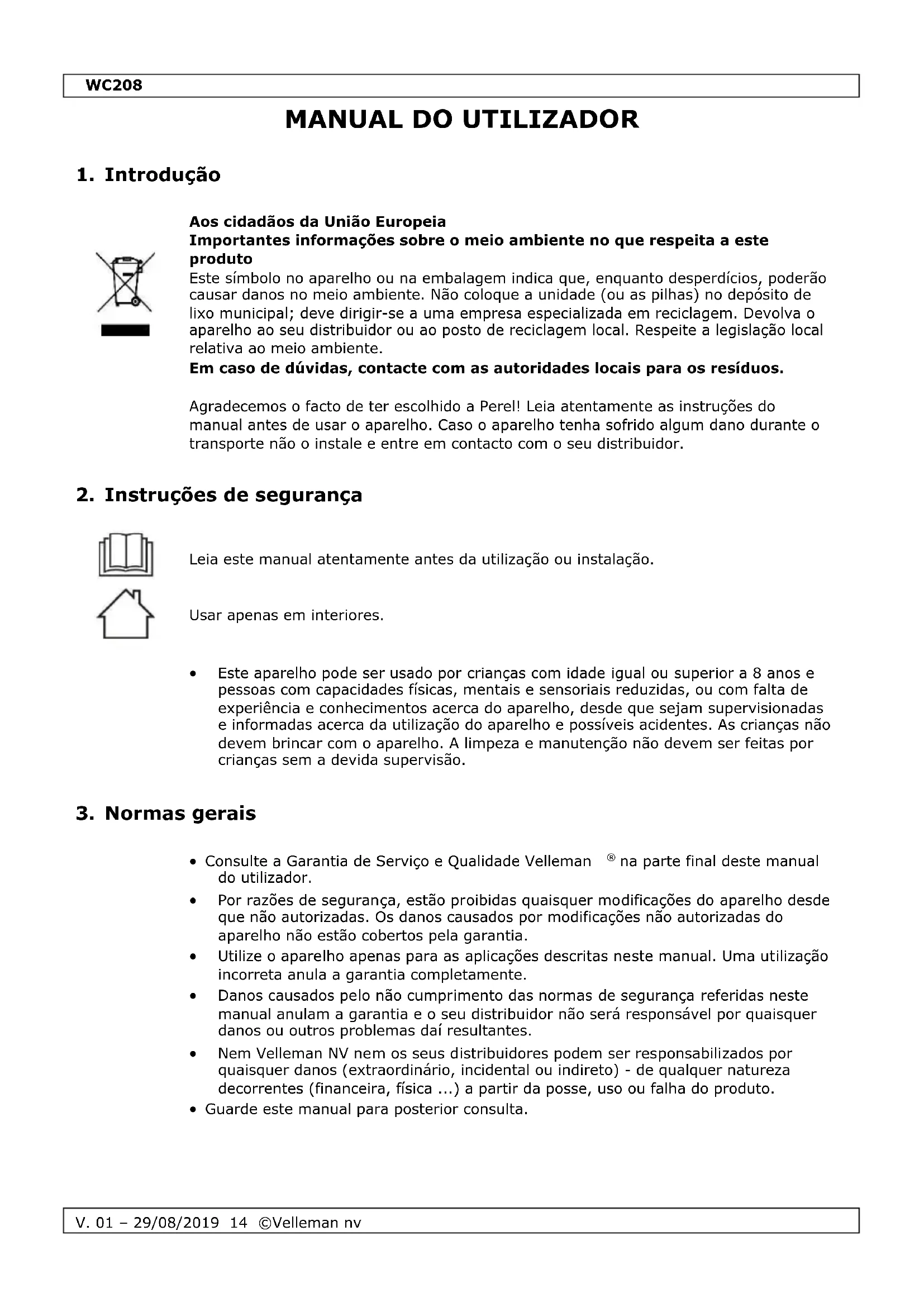 MANUAL DE UTILIZADOR WC208 Perel