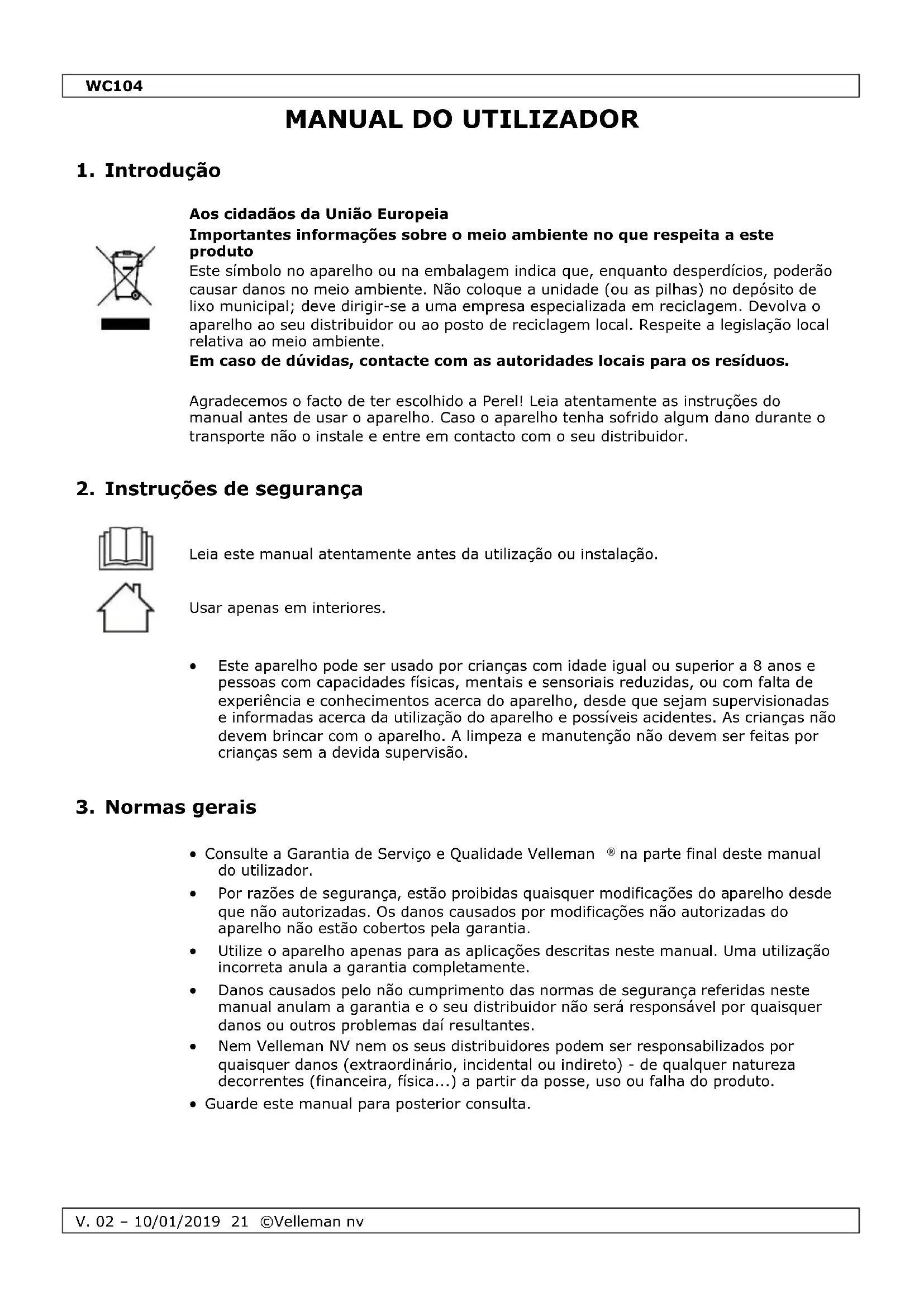 MANUAL DE UTILIZADOR WC104 Perel