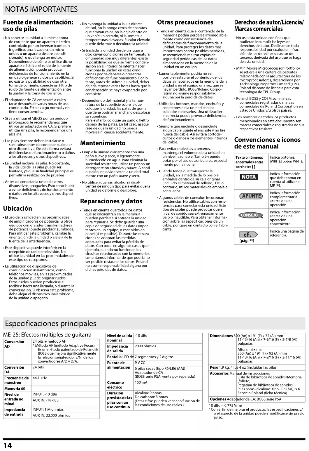 Baixe as instruções para o seu Guitarra em formato PDF gratuitamente! Encontre o seu manual ME25 - BOSS e retome o controlo do seu dispositivo eletrónico. Nesta página estão publicados todos os documentos necessários para a utilização do seu dispositivo. ME25 da marca BOSS.