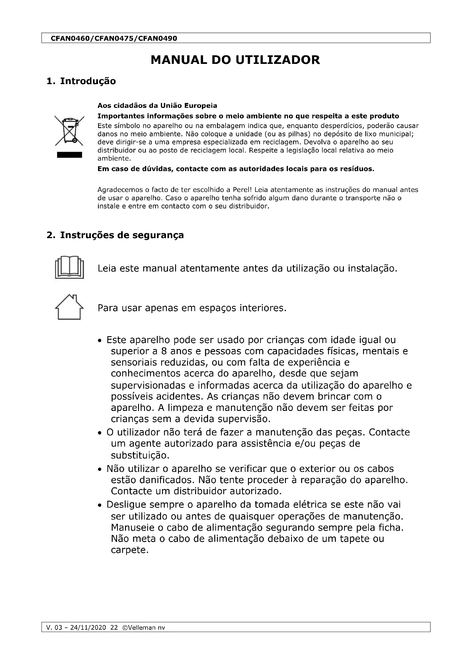 MANUAL DE UTILIZADOR CFAN0475 Perel