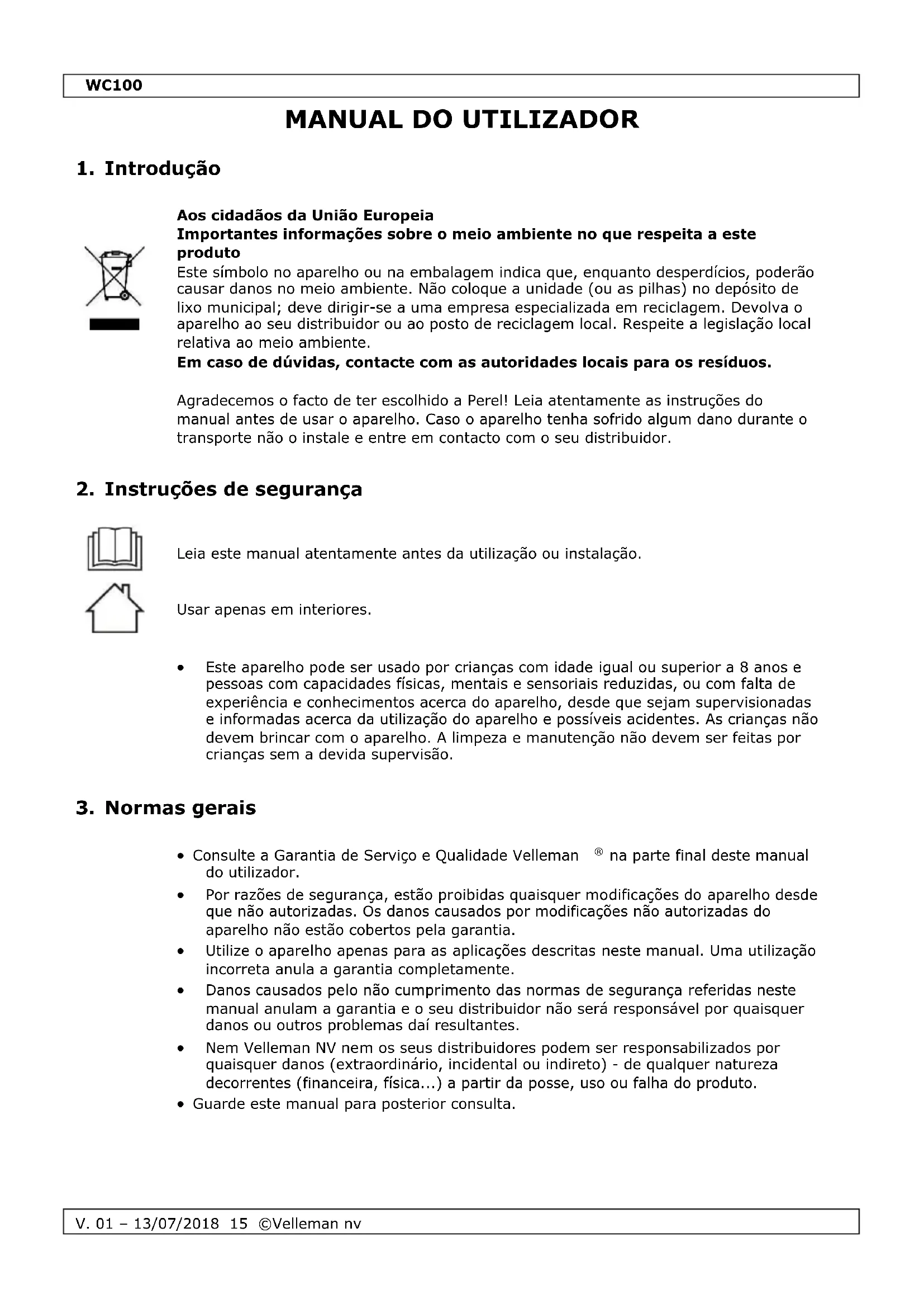 MANUAL DE UTILIZADOR WC100 Perel