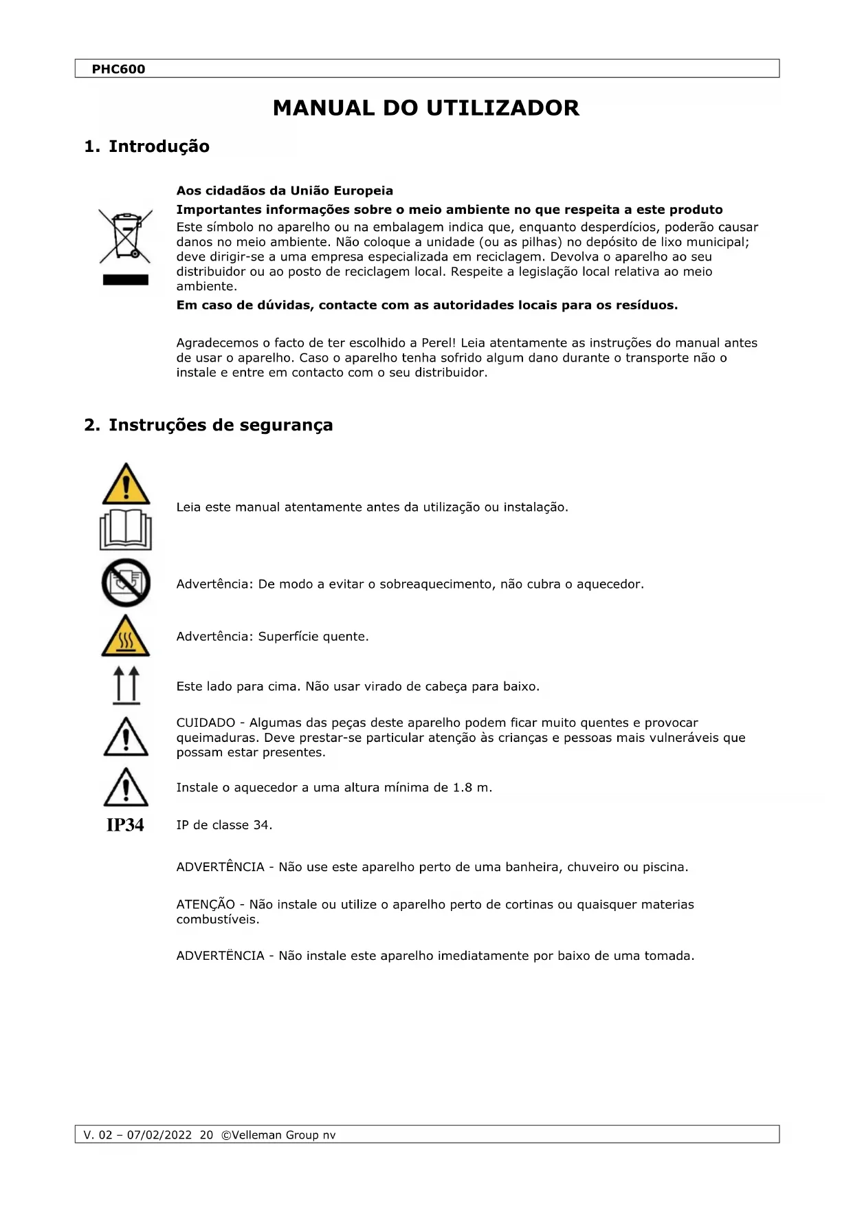 MANUAL DE UTILIZADOR PHC600 Perel