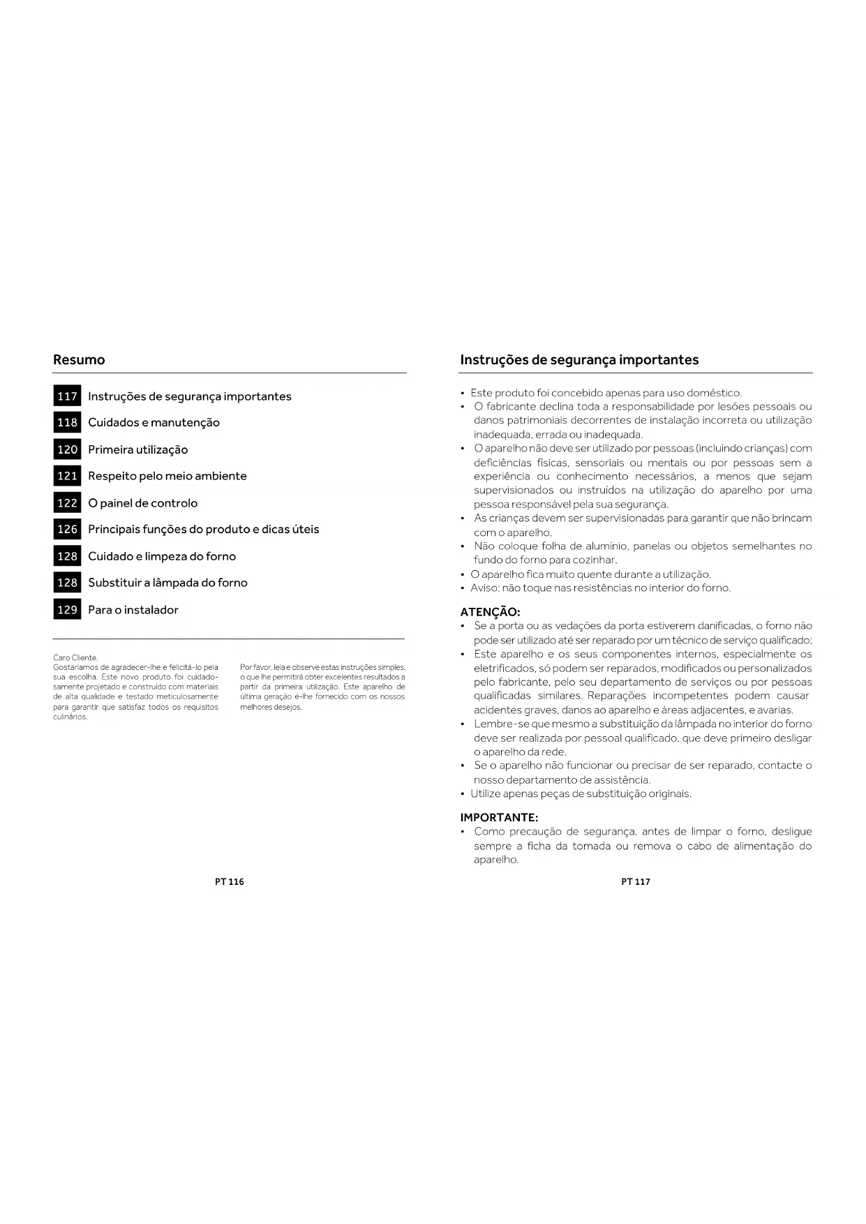 Instruções para o utilizador PT 116 FORNOS