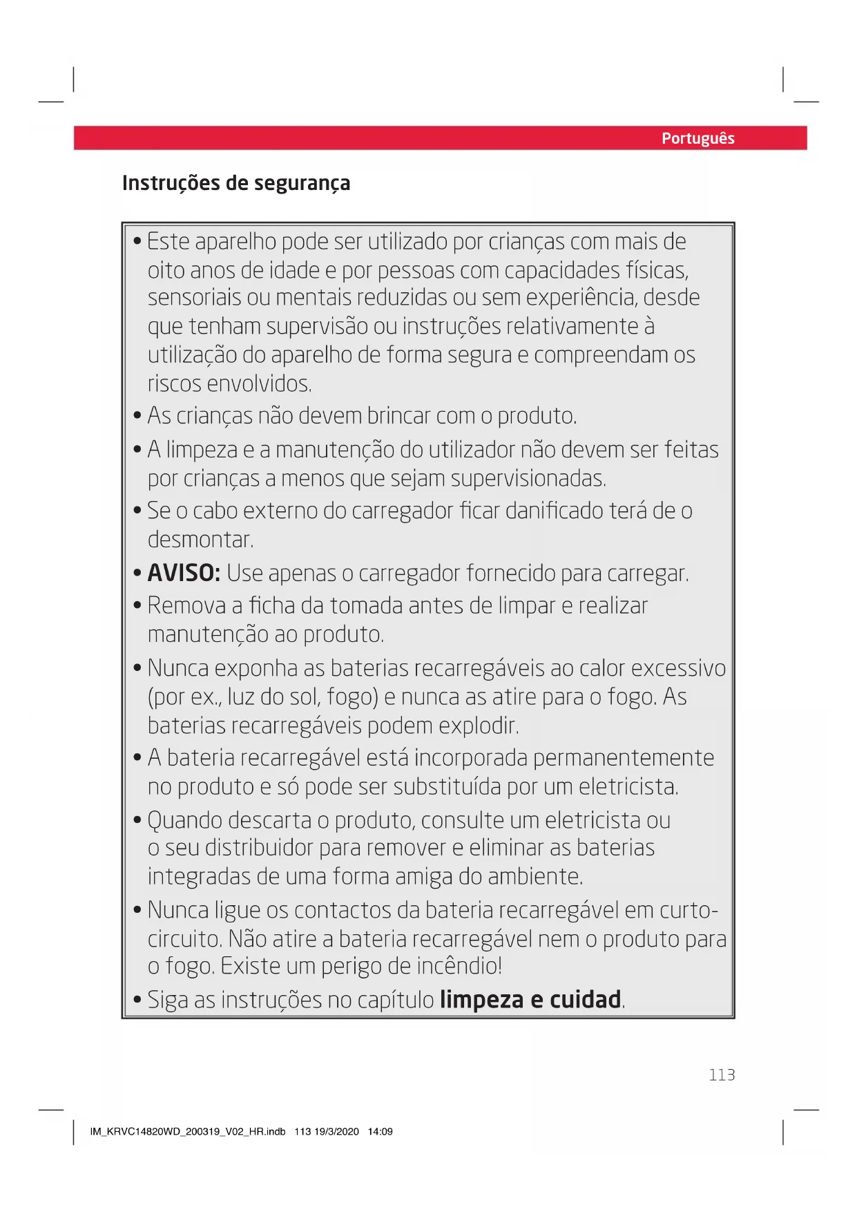 - Siga as instruções no capítulo limpeza e cuidad. IM_KRVC14820WD_200319_V02_HR.indb 113 19/3/2020 14:09Português