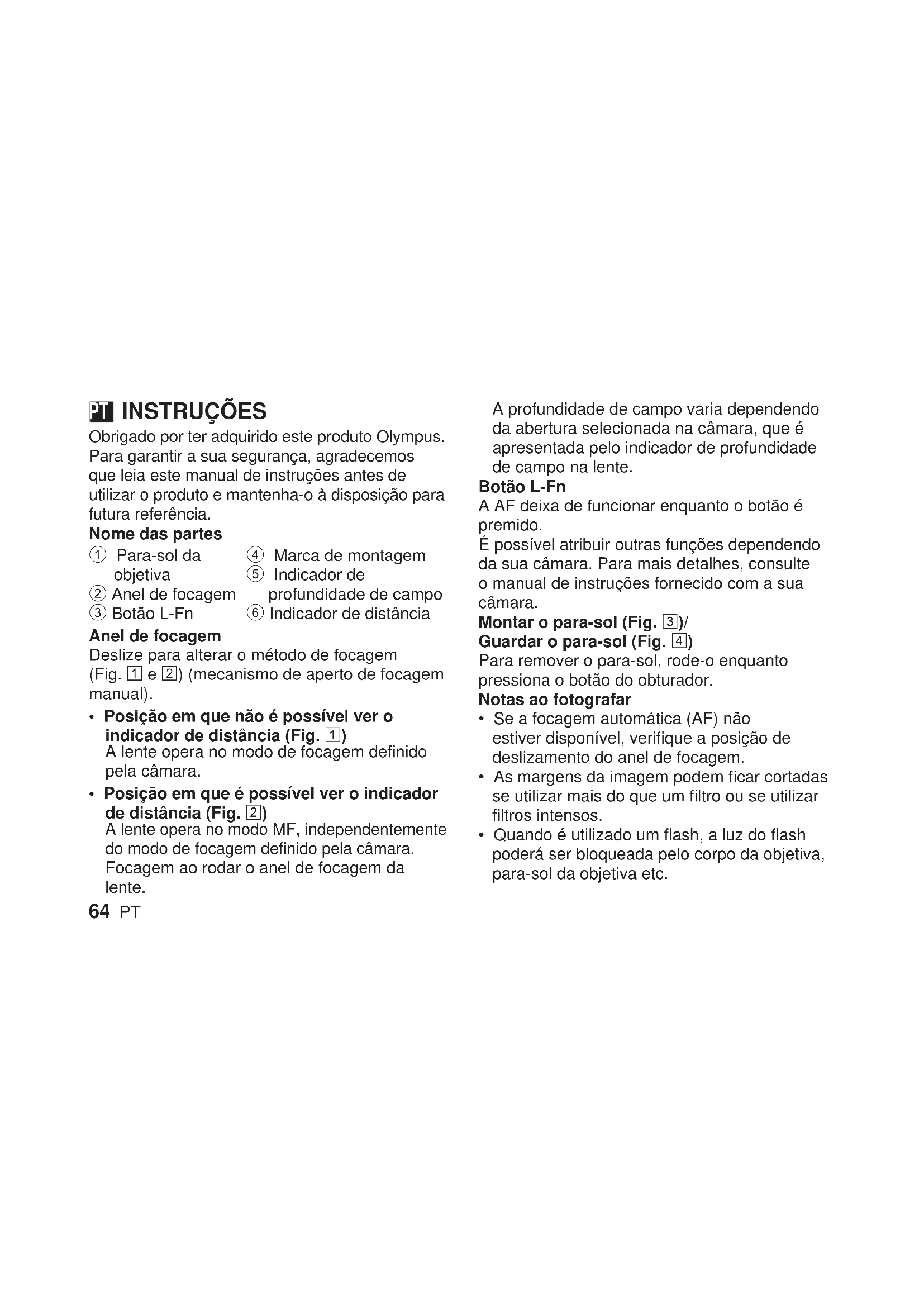 - Quando é utilizado um flash, a luz do flash poderá ser bloqueada pelo corpo da objetiva, para-sol da objetiva etc. PTPT 65