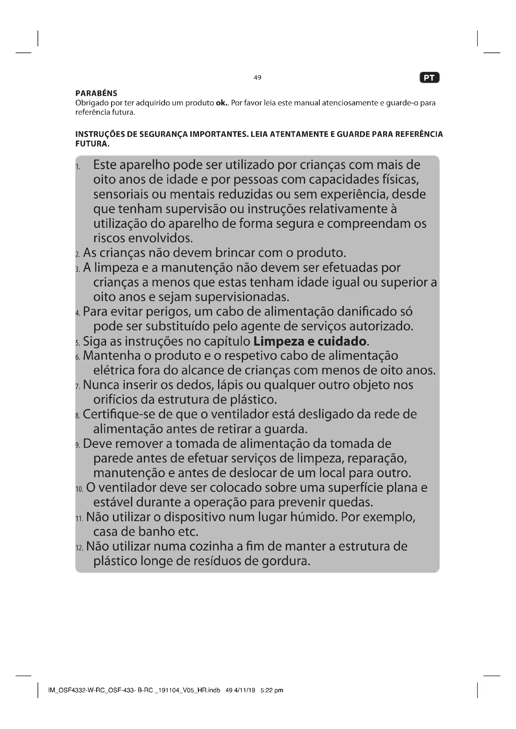 - Desligue da tomada se não for usado durante algum tempo. IM_OSF4332-W-RC_OSF-433- B-RC _191104_V05_HR.indb 52 4/11/19 5:22 pm53