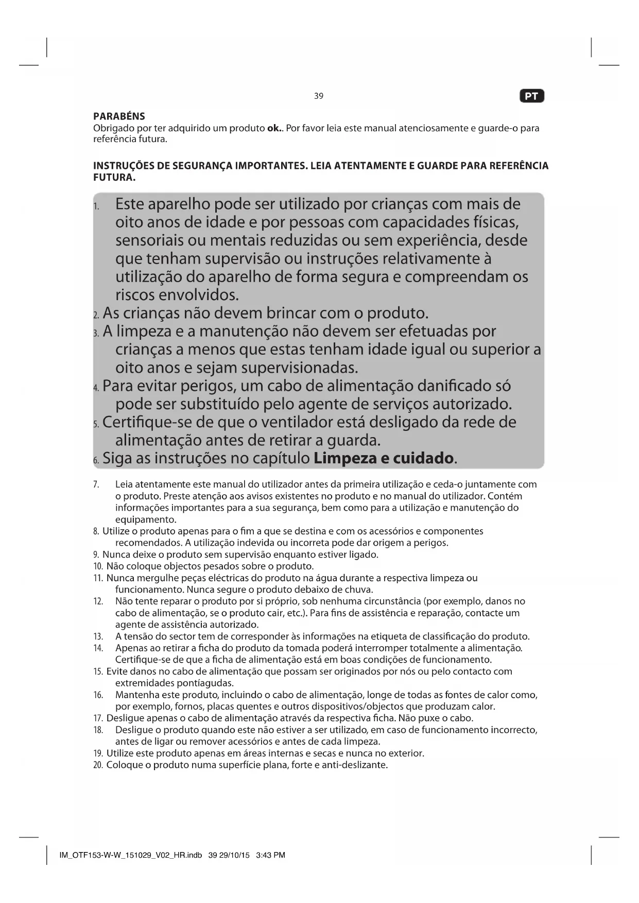 OTF 153W - Ventilador OK - Manual de utilização gratuito