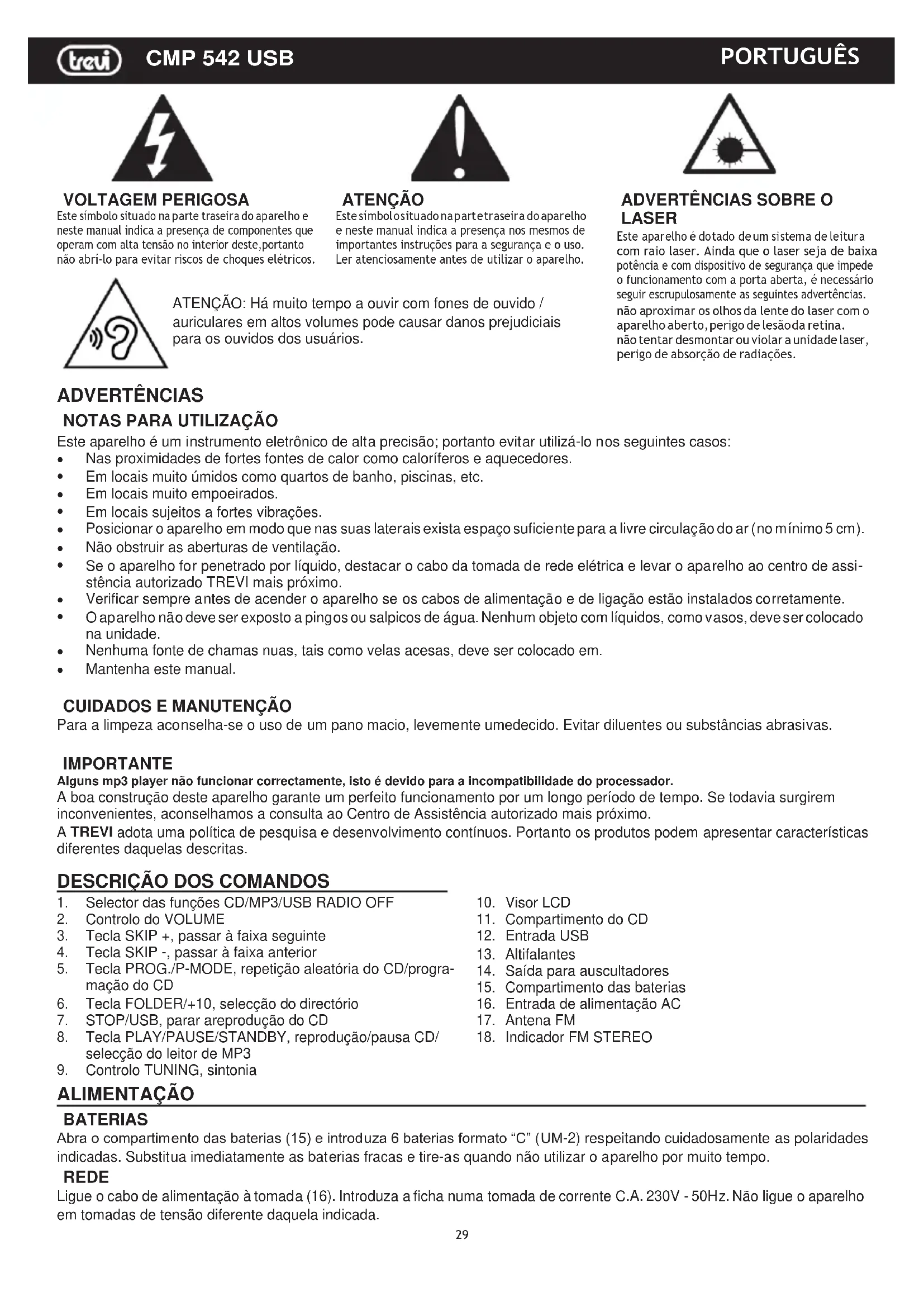 Encontre gratuitamente o manual do aparelho CMP 542 USB Trevi em formato PDF.