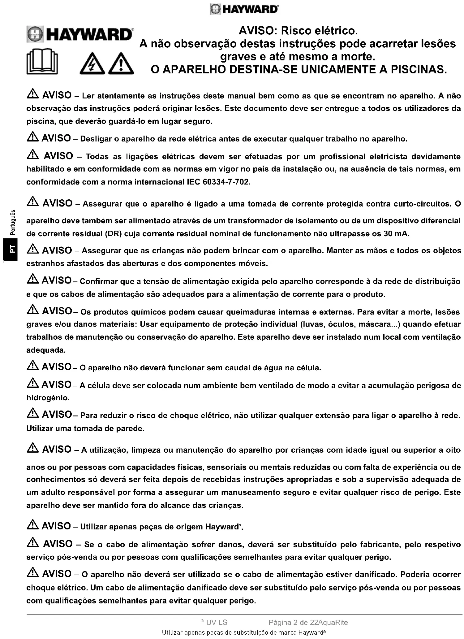 MANUAL DE UTILIZADOR AquaRite UV LS HAYWARD