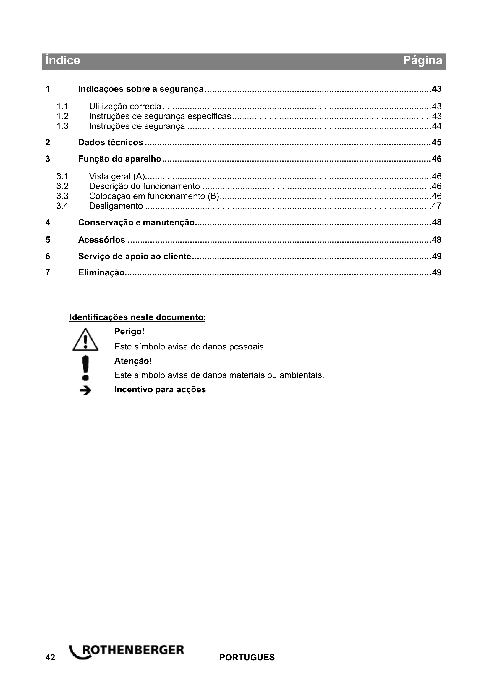 Incentivo para acçõesPORTUGUES 43 1 Indicações sobre a segurança